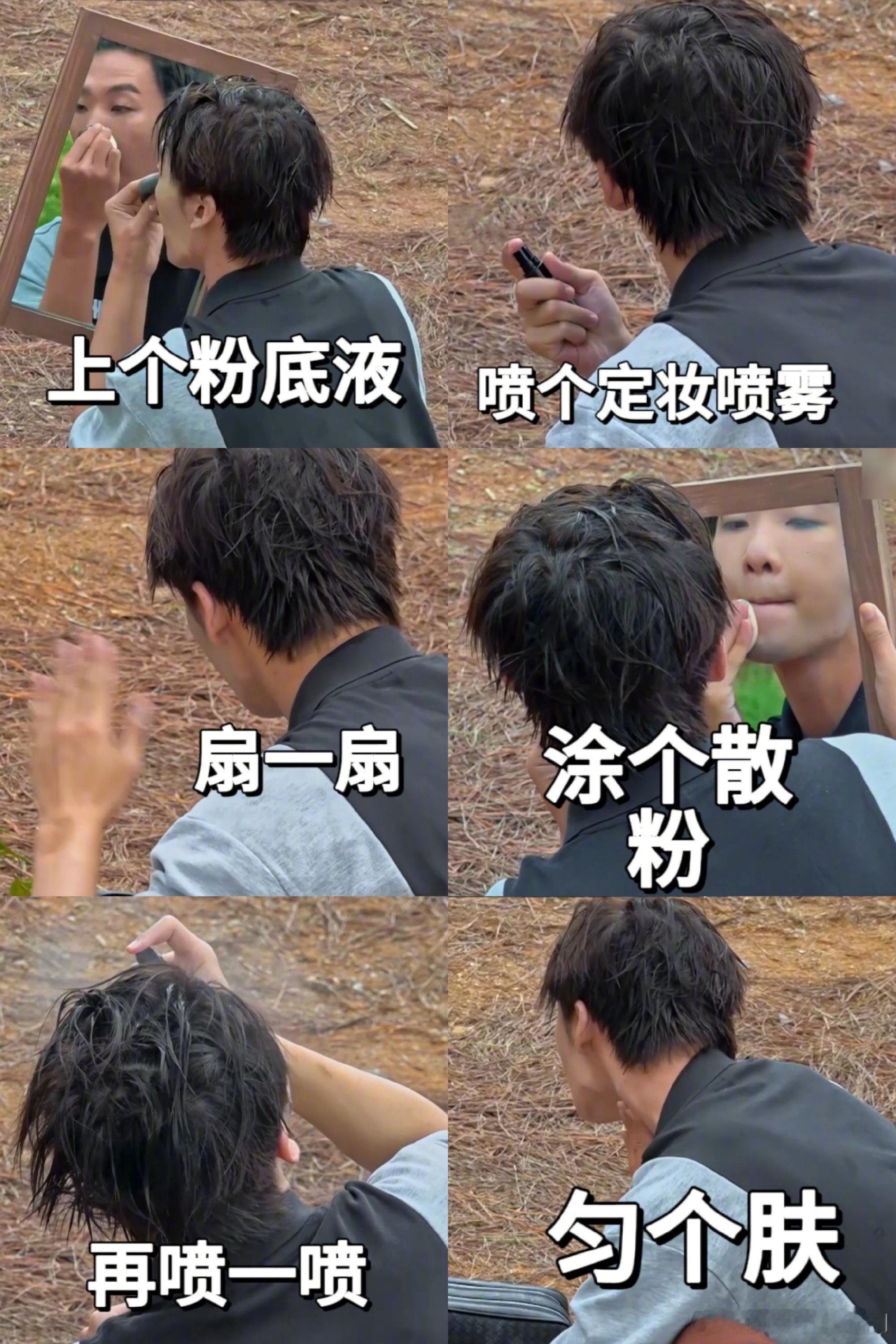 露营化妆态度满分,手法零分!别人化妆是精致雕琢,他是往脸上乱抹,老师看了怕是要心梗加跺脚。