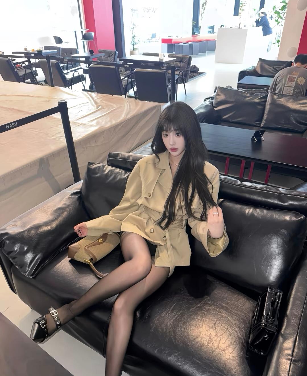 优雅办公时光,粉色外套搭配白色高跟鞋,沉浸在书香中。
