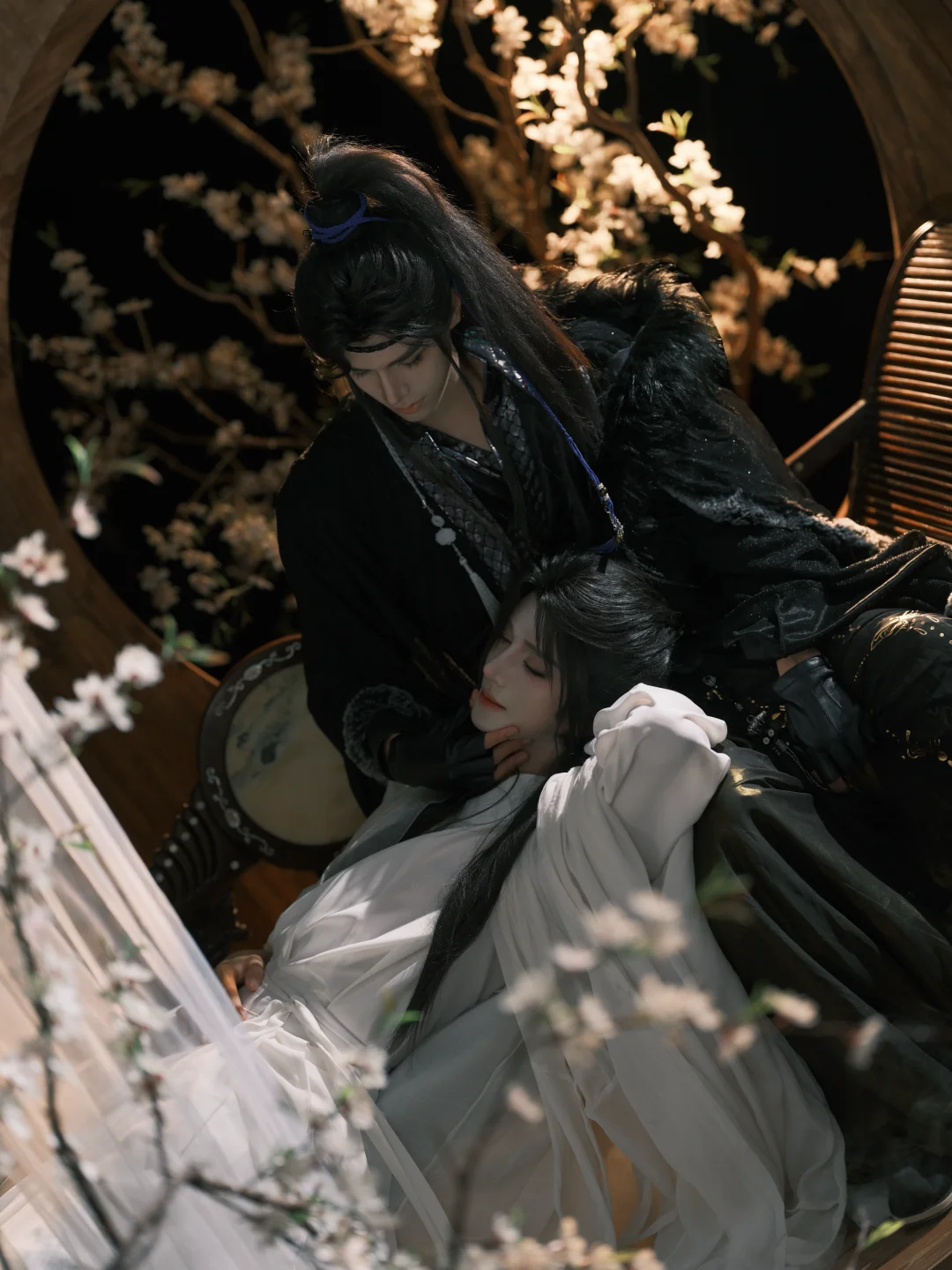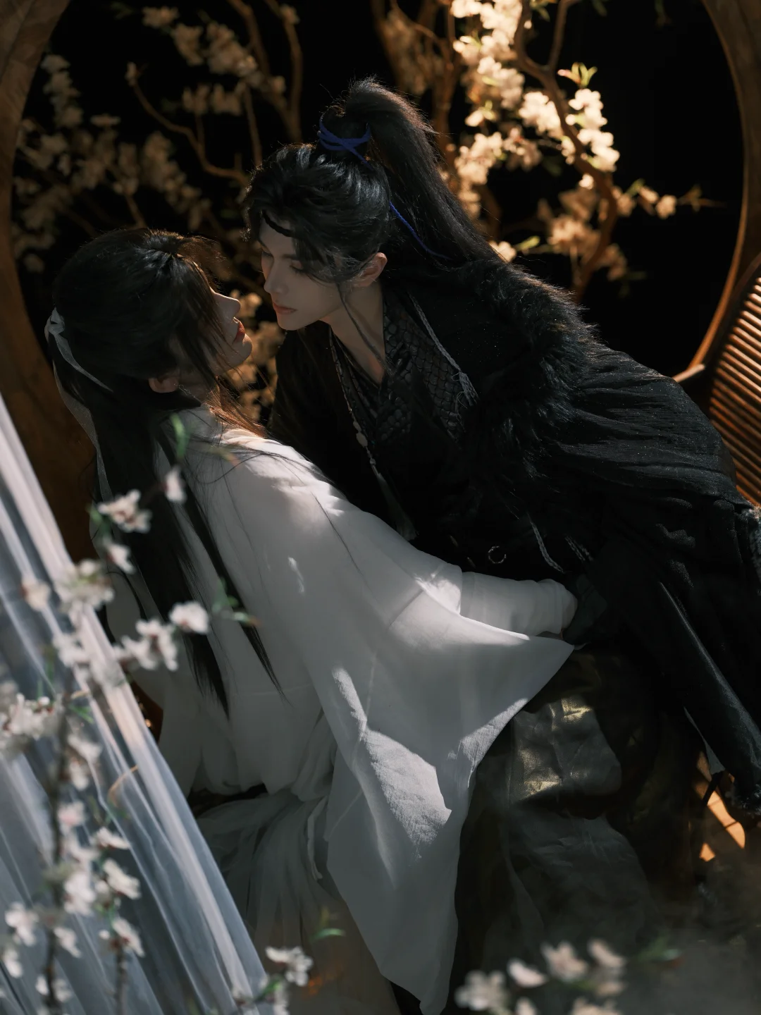风拂柳,粉樱绽放,我身着浅粉蕾丝旗袍,立于古栏之下。长袖轻笼,盘髻缀珠,耳坠摇曳