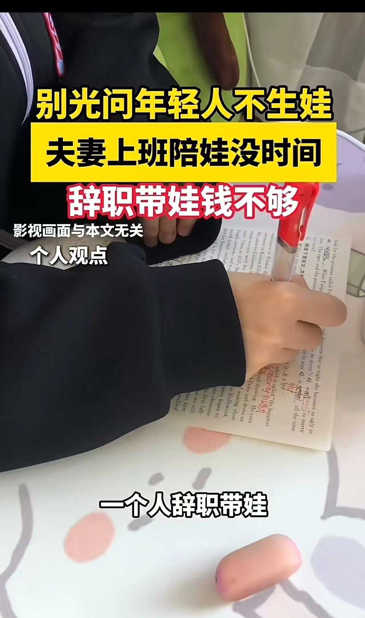一个女子吐槽:“别光问年轻人为什么不生娃?夫妻上班陪娃没时间,辞职带娃钱不够,你