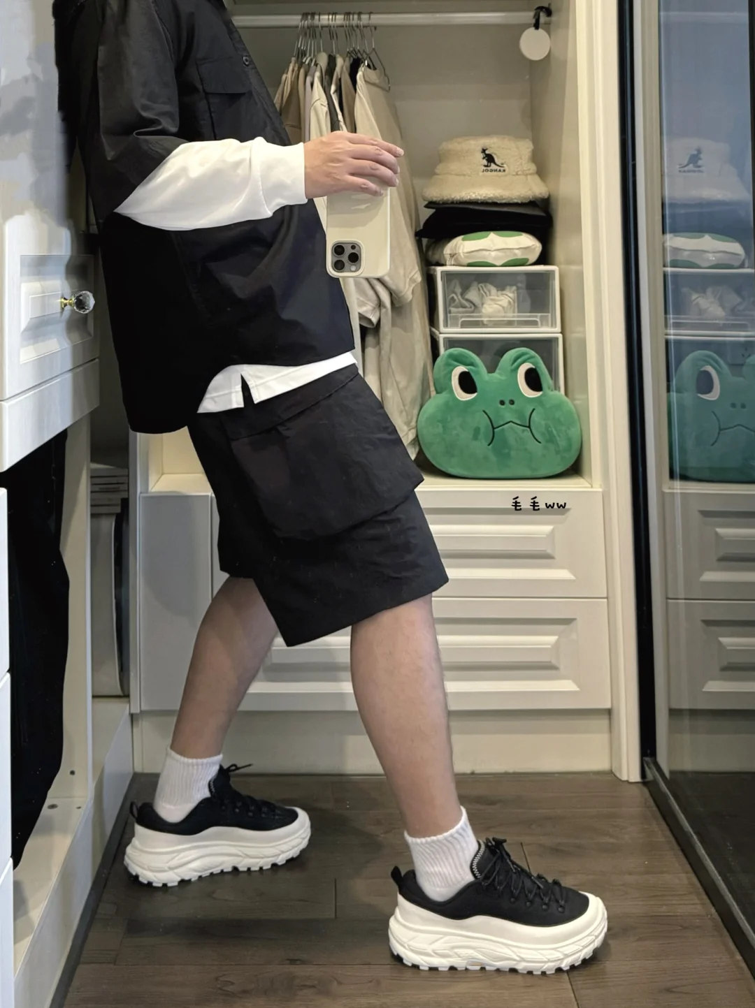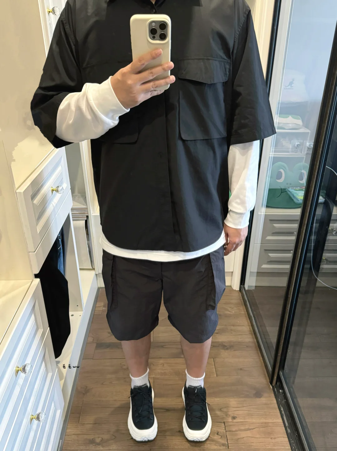 -工装衬衫,是春季必备单品;除了单穿跟短袖叠穿,跟长袖体恤同样可以搭配 . -整体黑白系,层次感十足;短裤更喜欢去年的这款大口袋,新款短裤属实驾驭不了 . —————— . 👕Uniqlo U / 476245 // L . 🩳Uniqlo U / 467159 // L . 👟HOKA Hidden / tor summit 2 // 42 . —————— . ✏️本人178cm75kg 球鞋尺码265mm(正常EU42) . 💭以上均为我个人观点,不喜勿喷,欢迎讨论。