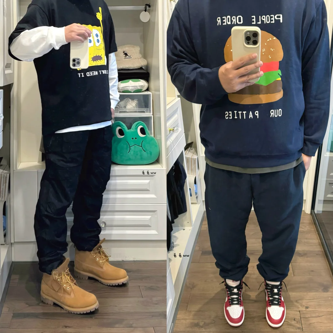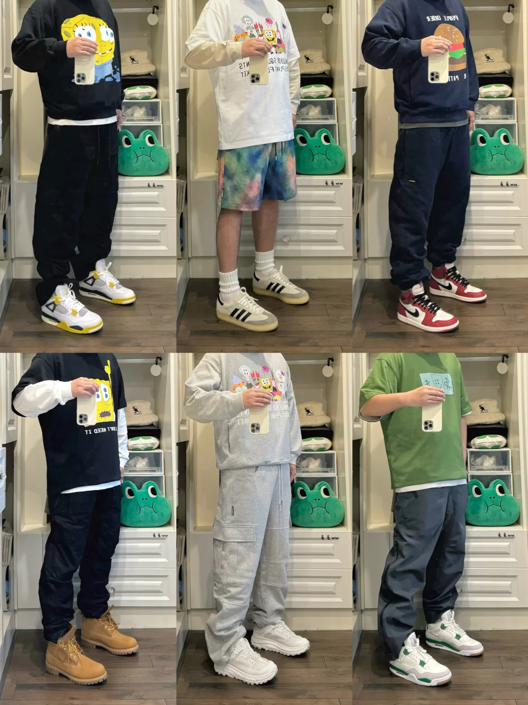 -宽松版型,厚度适中,没有很透;除了白色,其他正反面都有印花,单穿叠穿都行