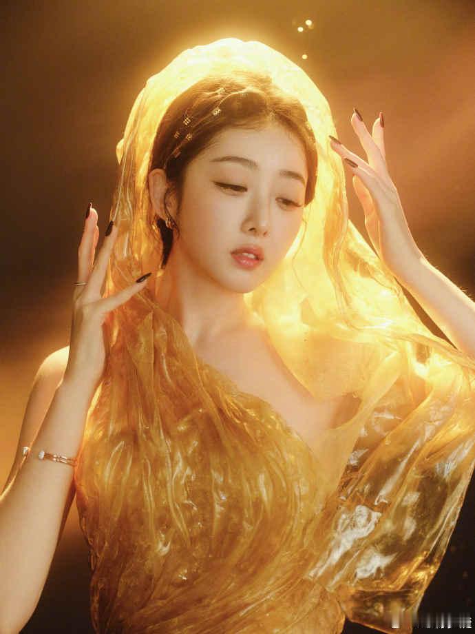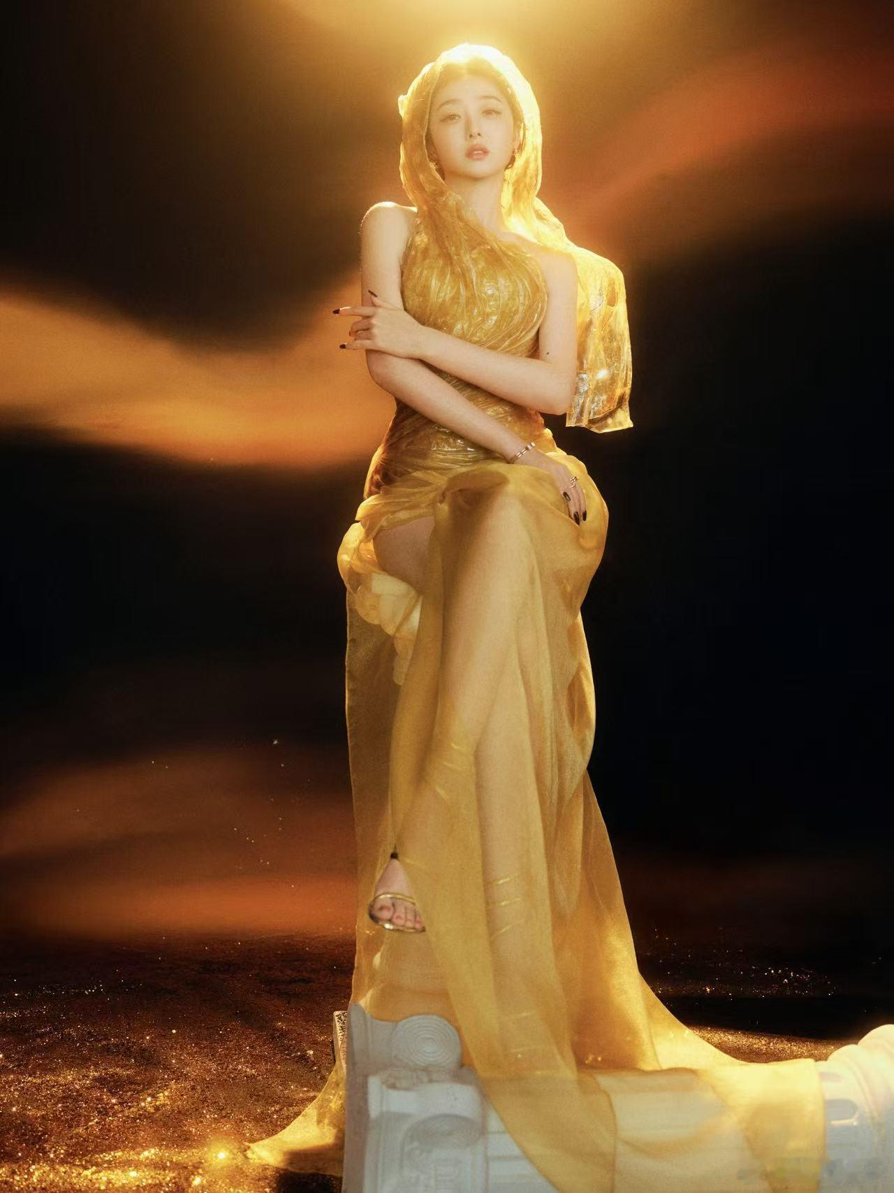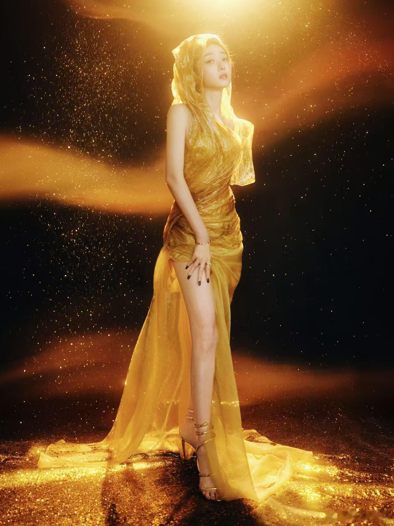 这身金色的礼服让蒋梦婕的气质更加分,裙摆随着步伐轻轻摆动,像是带着整个宇宙的光芒,她的每个动作都自带魅力,真的是女神级别的存在。