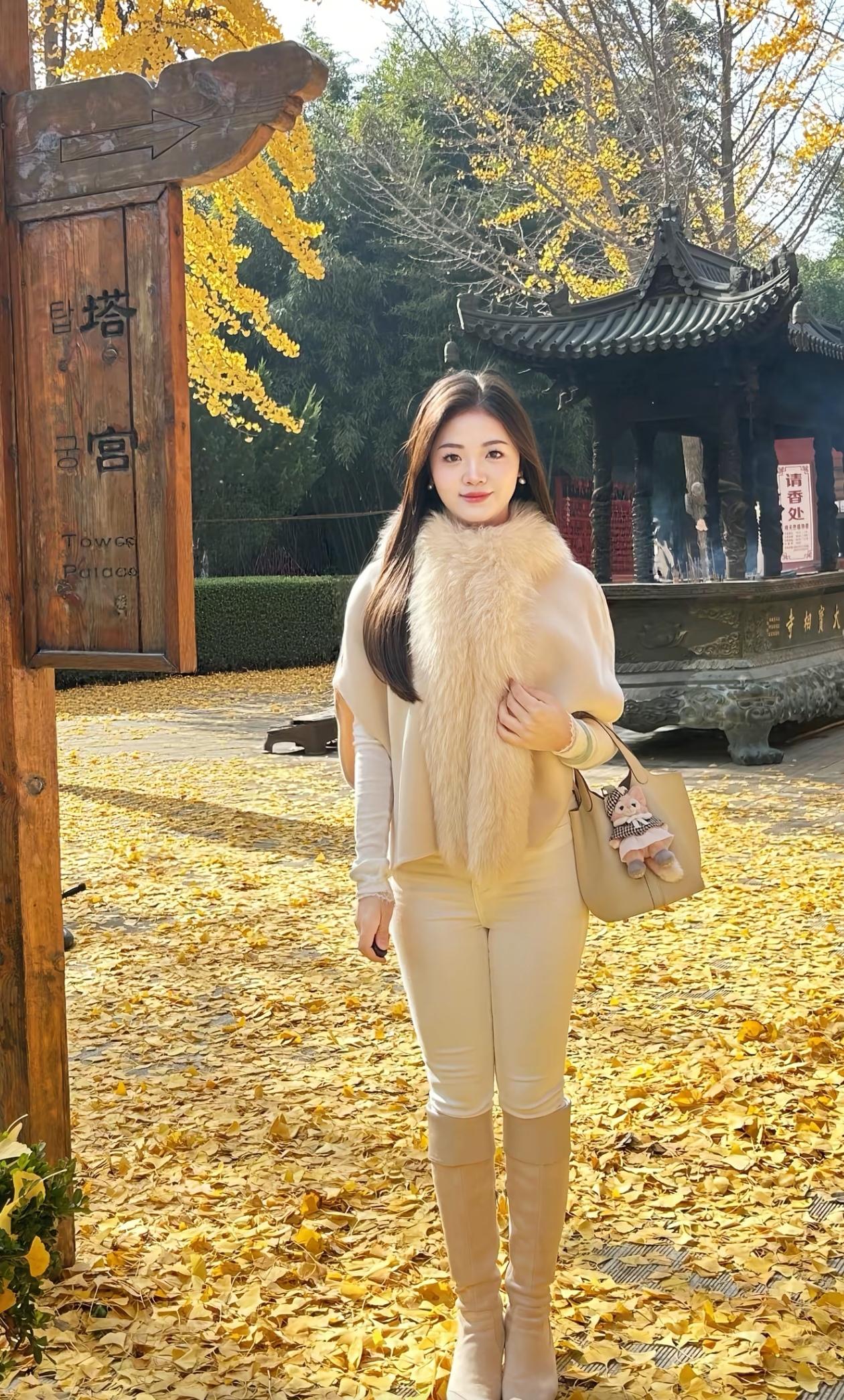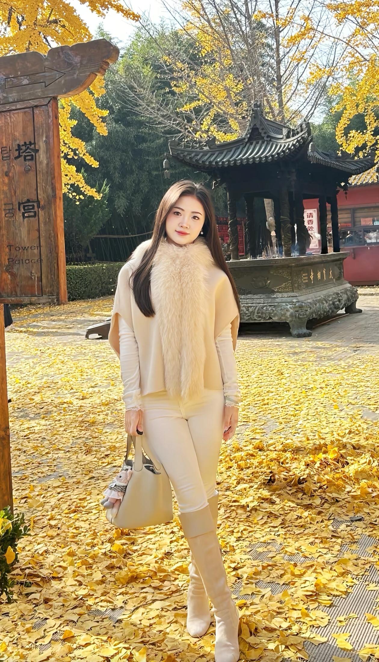 秋日穿搭指南:白色毛衣+皮草外套,温暖又时尚!🍂👗🧥
