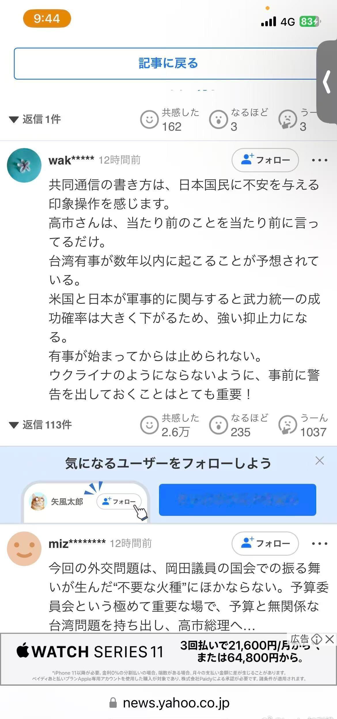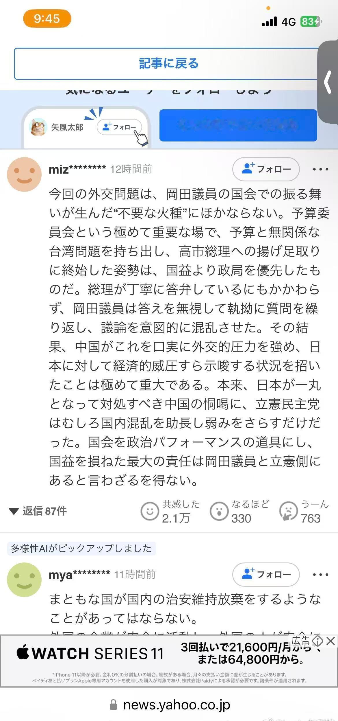 日本网民的发言,大部分是他们支持高市早苗,觉得她说的对,不能屈服中国的压力 高市早苗是他们选出来的,一点都不意外,中国人去开店开名宿,买地买房,做老板赚到钱比他们日本人过的好,难受了呗,心里不平衡。社会又老龄化,便利店超市都是东南亚的人,心里不舒服又没办法,把火撒到中国人头上 日本经济已经不行了,高市早苗加速了日本的衰败 高市早苗让日本国家承担代价日本自卫队配合高市早苗亮刀 日民众批高市早苗惹恼了中国