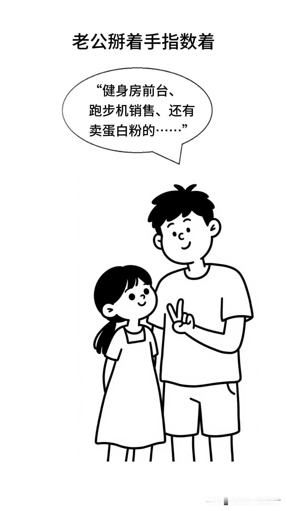 趣味漫画:老婆:“你办健身卡到底去不去?”老公:“当然去!我认识了好多朋友!老婆:“谁?”老公:“健身房前台、跑步机销售、还有…