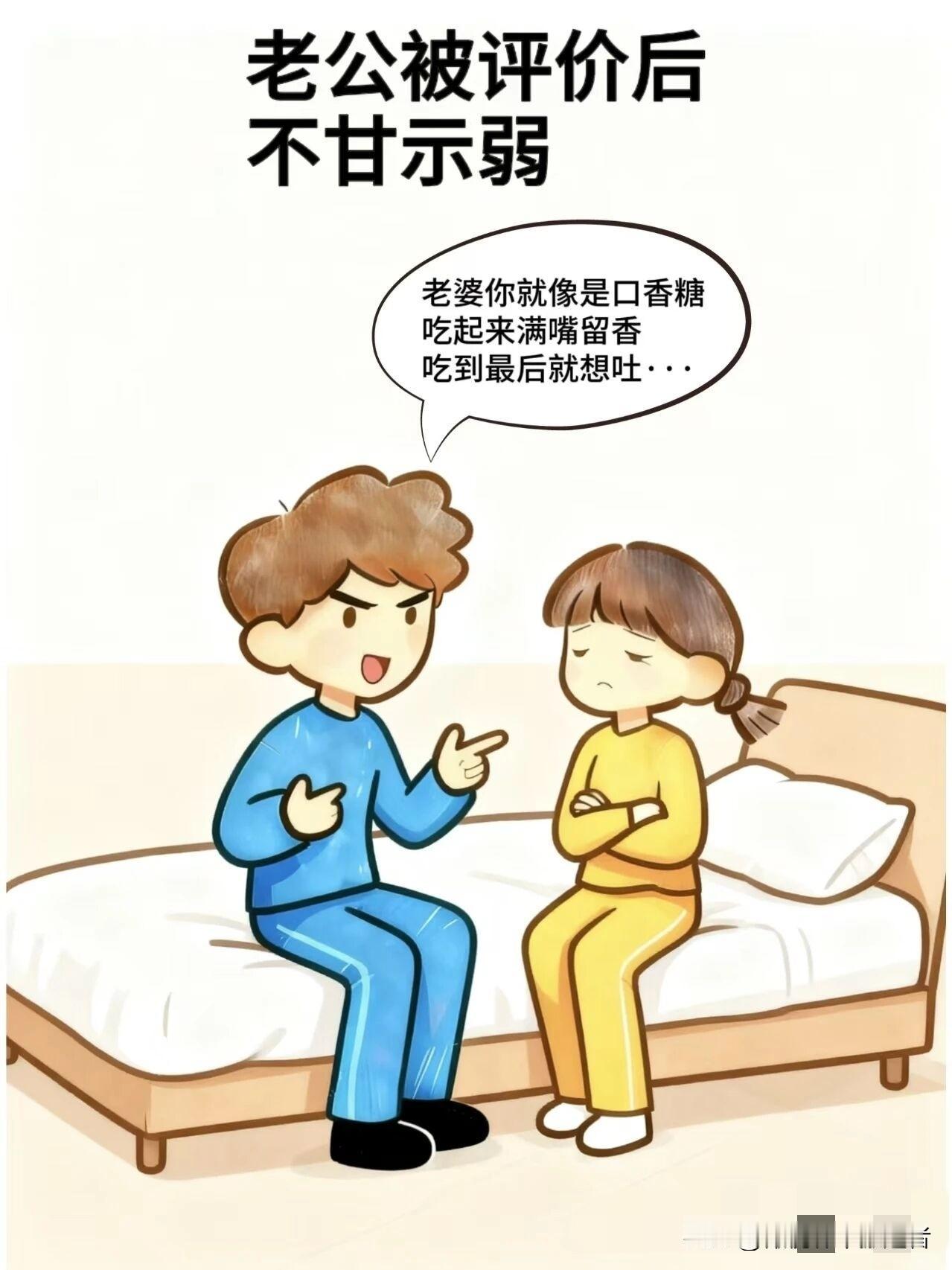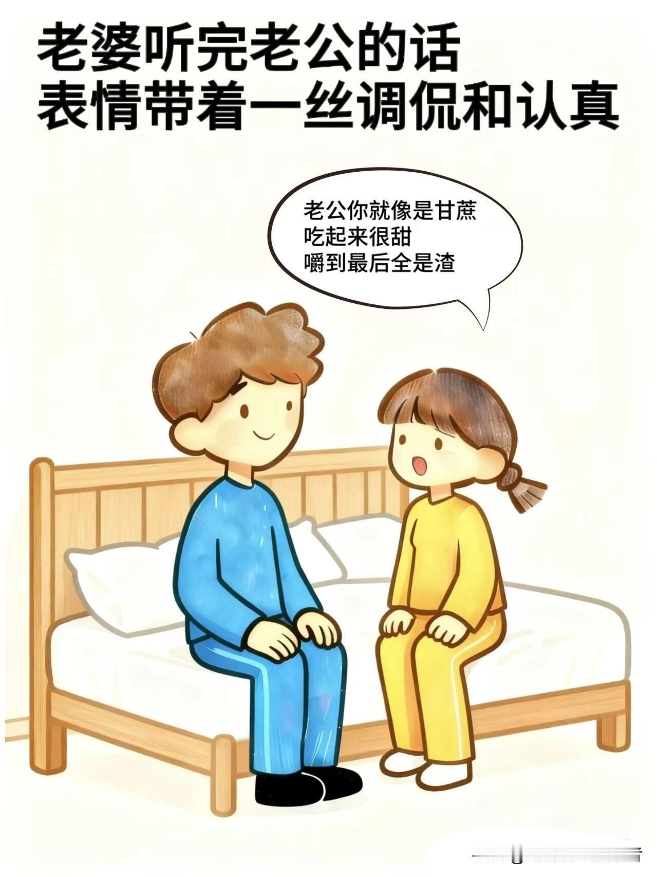 趣味漫画:睡觉前,老公:老婆,咱俩结婚这么多年了谈谈你对我的感受,老婆:老公你就像甘蔗,吃起来甜,嚼到最后全是渣,老公听完脸通红