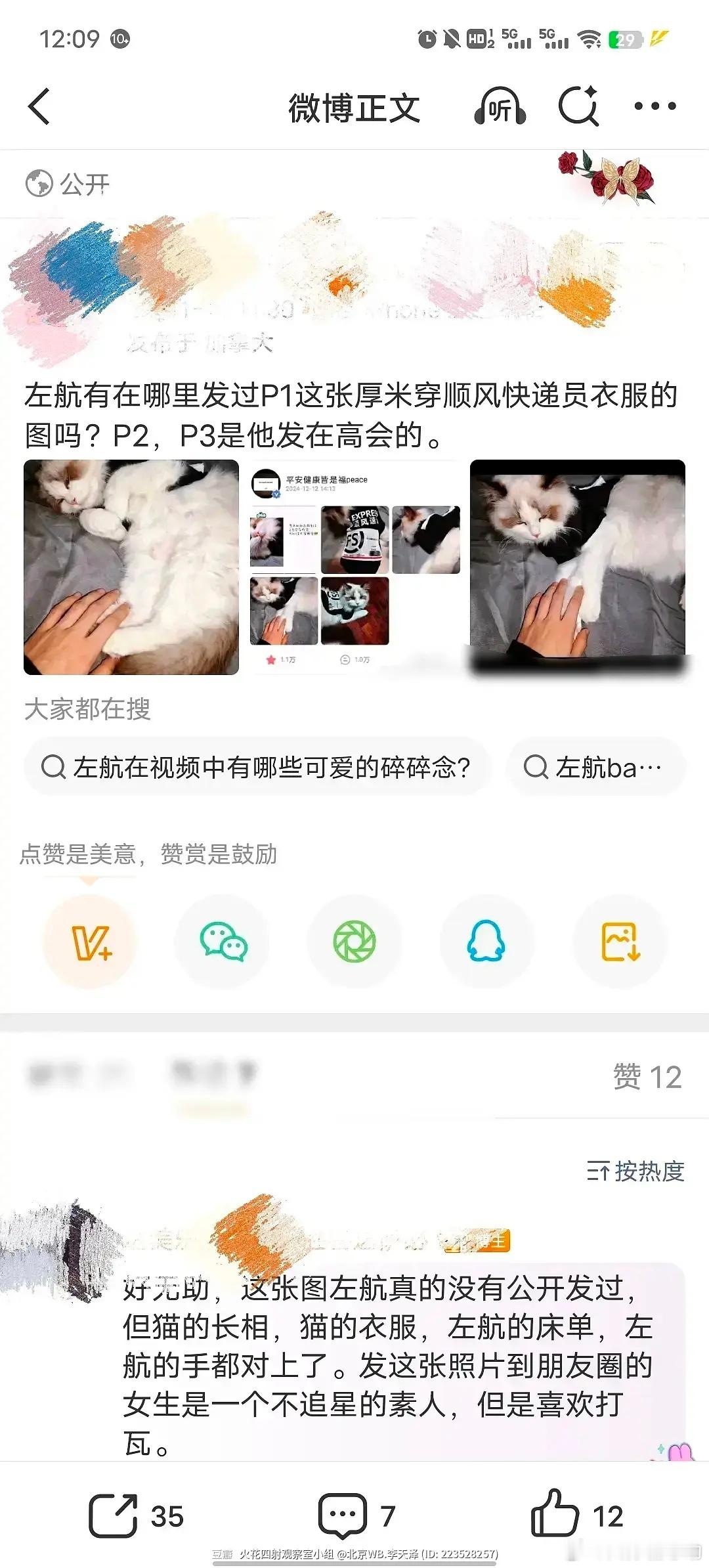 因为一张疑似本人的未公开猫图,有粉丝怀疑楼三代左航恋爱了