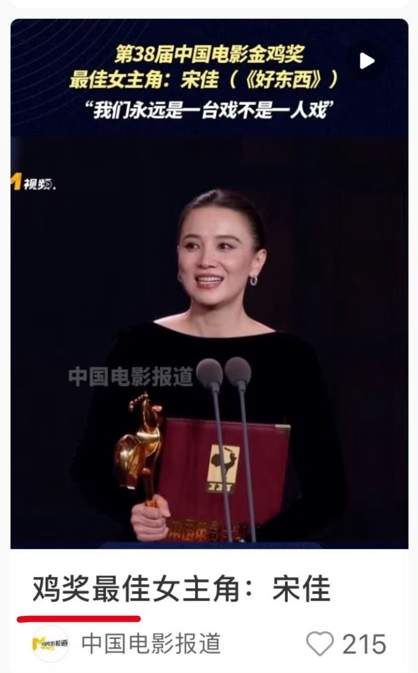 乐子❗️六公主给宋佳金鸡奖最佳女主角少打了一个“金”字!