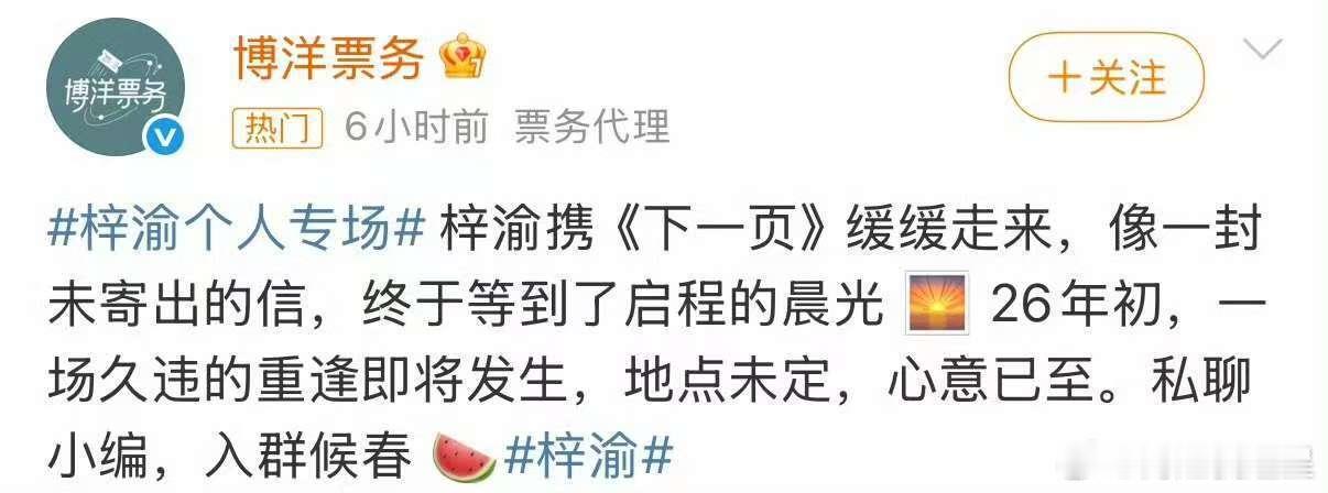 传下去,粉丝已经开始许愿城市了票务已经得到消息,明年上半年,梓渝演唱会,等你来