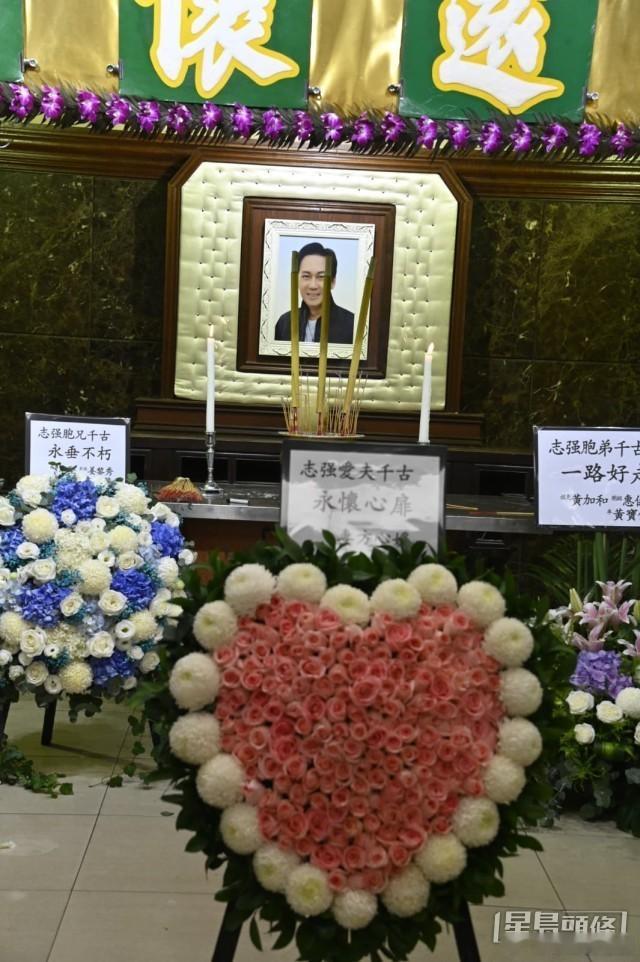 甄志強追思會丨遺孀方心媛哭成淚人 曾志偉任達華等致花牌悼念.前「亞視小生」甄志強早前於內地離世,終年59歲。今日(16日)在世界殯儀館舉行追思會。靈堂以簡潔為主,橫匾寫上「永遠懷念」,靈堂前中央擺放了遺孀方心媛的心形花牌,並寫上「永懷心扉」。而甄志強生前一眾圈中好友致送花牌悼念,包括有呂頌賢夫婦、江美儀、黃璦瑤、劉錫賢、林迪安、方平夫婦、伍衛國、吳浣儀、曾偉明、區永權、楊紹雄、張文慈、麥翠嫻、鄧英敏、王俊棠、陳榮竣夫婦、肥媽、顏千汶、黃文標、苑瓊丹、陳展鵬夫婦、姜皓文夫婦、尹揚明、黑妹(李麗霞)、黎瑞恩、任達華、蘇志威夫婦、楊玉梅等,形成一遍花海,可見他人緣極好。甄志強遺孀方心媛感謝傳媒關心,坦言情緒未平伏,故婉拒接受訪問,但透露先夫甄志強遺體已火化,稍後會安放骨灰位。林韋辰於下午5時30到殯儀館悼念故友甄志強,他表示跟甄志強認識多年,以前在亞視一齊做主持,對方會為香港藝人高爾夫協會教導新人打球姿勢,又指甄志強為人較內向,聽到對方離世消息好突然,一個多月前跟對方一齊參與國內比賽,但對方在5月做了做通波仔手術,可能未完全復原。談到可有關心甄志強遺孀方心媛,他坦言有傳訊息慰問,大讚甄太為人很好,亦會代表內地朋友慰問對方。方平、鮑起靜、戴志偉、張文慈、李思雅、蘇志威、黎瑞恩等一身素服陸續到達殯儀館,張文慈表示跟甄志強認識多年,都有在平台直播帶貨,亦有邀請對方做嘉賓,雖然之前知道甄志強身體出狀況,但不覺得有大問題,今年見面幾次面,最近一次在兩、三月前見過對方,又大讚甄志強當她作妹妹看待,甄太為人也很好,經常教她健康飲食。日前宣布離開TVB的張頴康亦有到達殯儀館送別甄志強,但婉拒受訪。