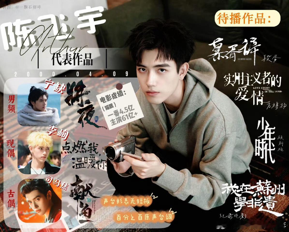 陈飞宇实绩盘点,188的大帅哥原声率100%,看了实绩确实够顶,担得起