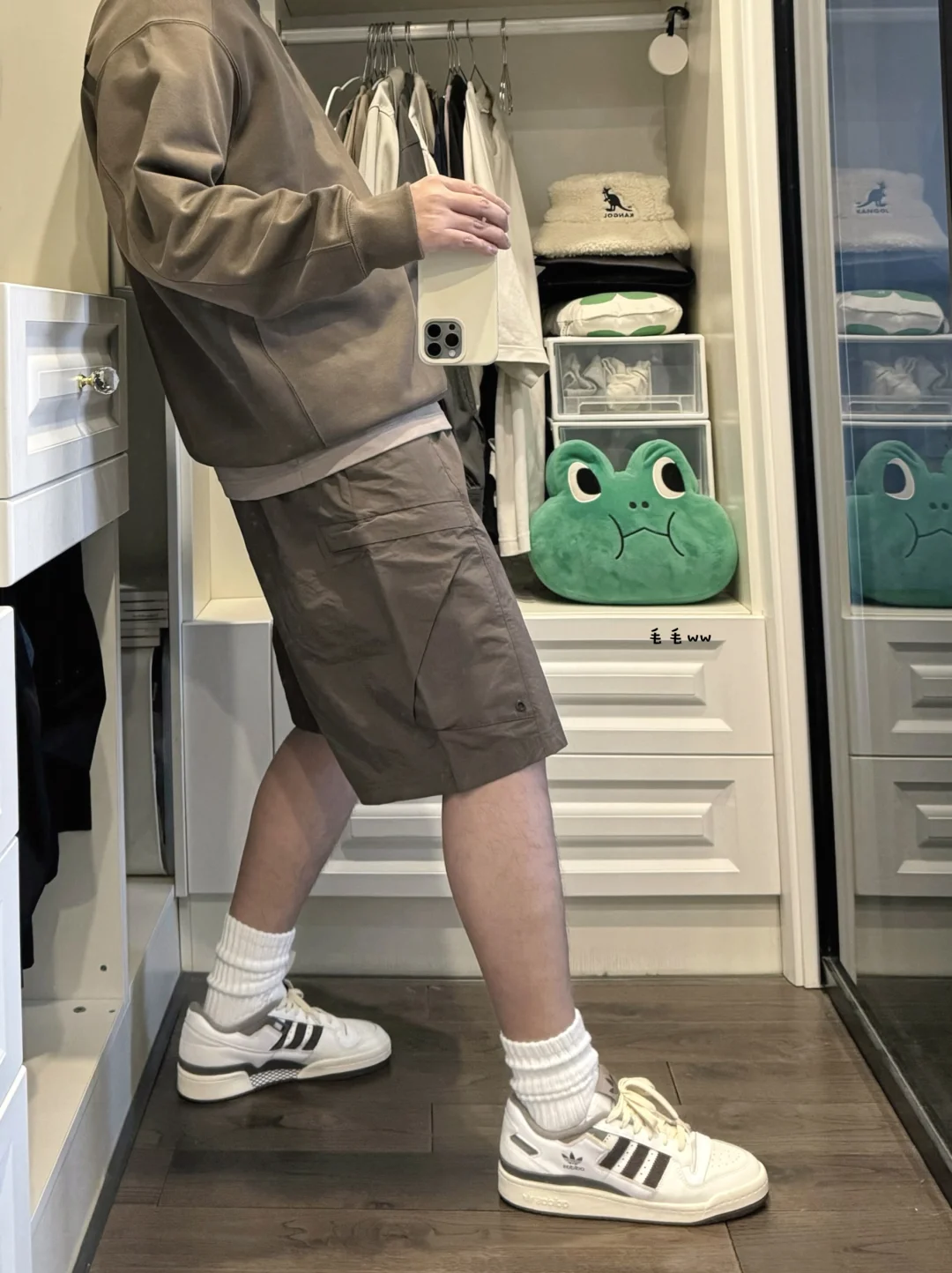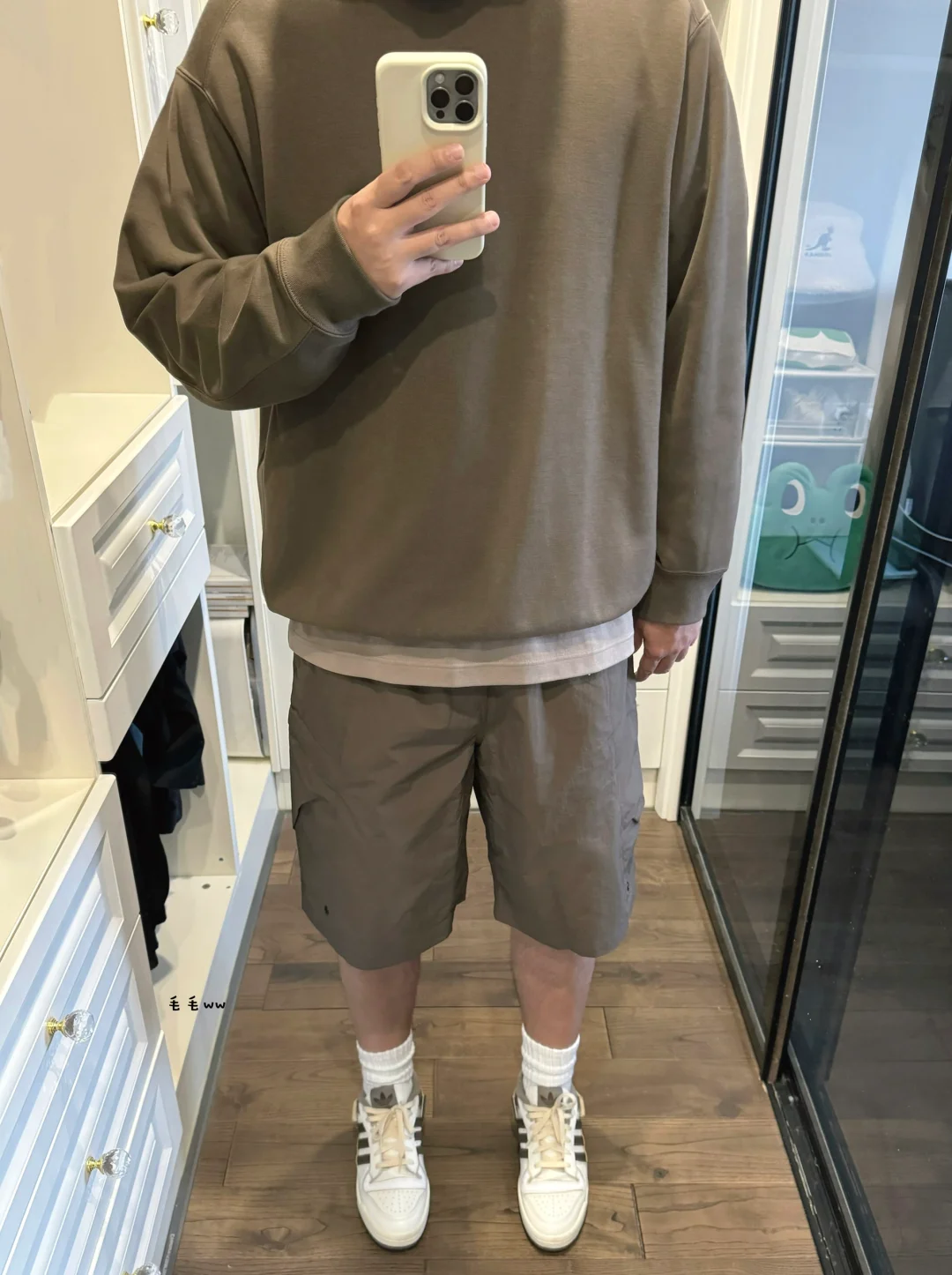 -大地色系,秋季频繁着用,春季也来浅搭一下 -上长下短,户外尼龙材质,更适应多变的气候 . —————— . 👔Uniqlo +J // XL . 🩳Teenie Weenie Men // XL . 👟Adidas Forum 84 low // 42 . —————— . ✏️本人178cm75kg 球鞋尺码265mm(正常EU42) . 💭以上均为我个人观点,不喜勿喷,欢迎讨论
