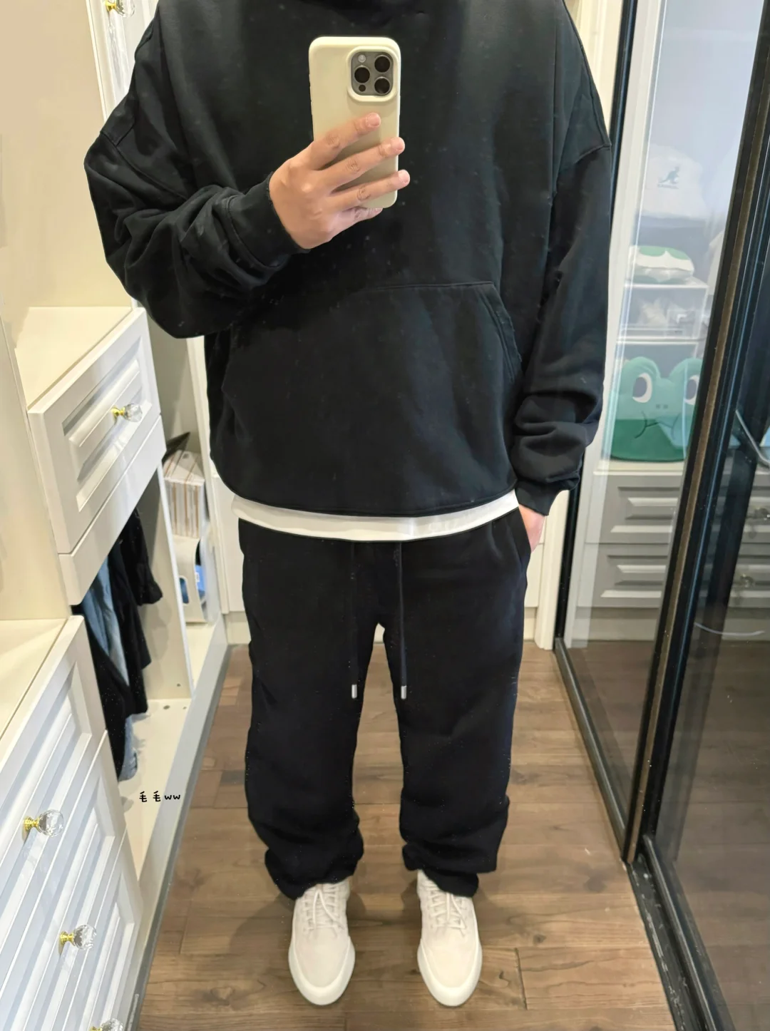 -“慵懒”穿搭又来了,害得是卫衣卫裤,黑白色系叠穿,慢人也可以光速出门 . -卫裤的选鞋经验分享:束脚裤挑“瘦鞋”,避免臃肿;直筒裤搭“胖鞋”,支棱裤脚 . —————— . 👔Expensive Taste // M . 👖Teenie Weenie Men // XL . 👟Adidas FOG Rivalry / Athletics // 43 . —————— . ✏️本人178cm75kg 球鞋尺码265mm(正常EU42) . 💭以上均为我个人观点,不喜勿喷,欢迎讨论