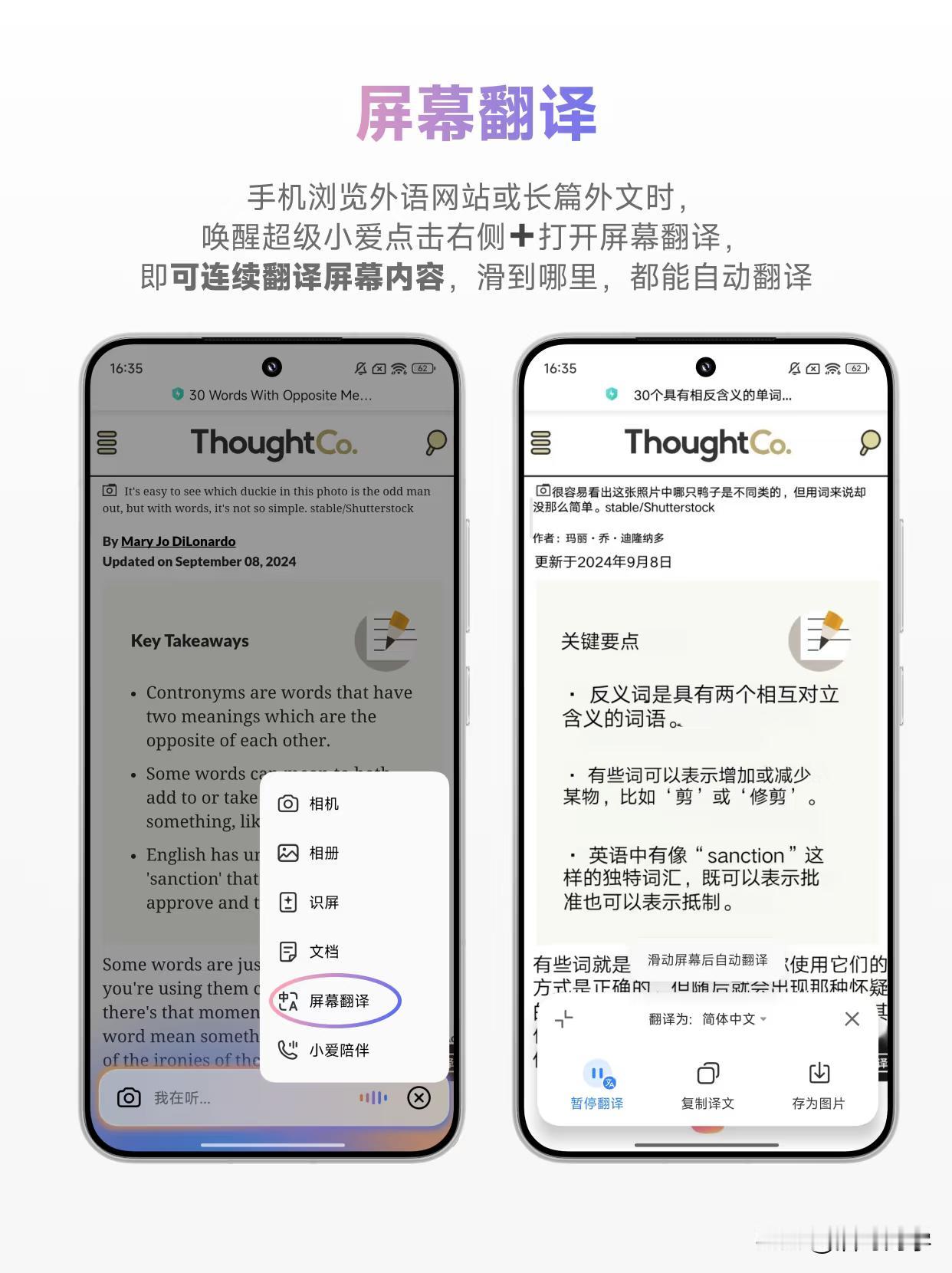 小米手机,翻译能力升级啦! 超级小爱的翻译功能非常好用,可以实现屏幕翻译、圈屏翻译、拍照翻译、对话翻译、实时字幕等功能,最近,小米17pro和小米17pro max不是有很多小伙伴不知道能干嘛吗?对话翻译时,翻译的文字就会显示在背屏上面,这样你跟老外对话就不用把手机正面屏幕给他看了,直接面对面就可以实现无缝翻译。超级小爱的越来越智能,说明金凡还是有两把刷子……小米17手机 小米17pro 小米17pm 小米新17 小米17p 小米17续航王 小米17x Mi17Pro