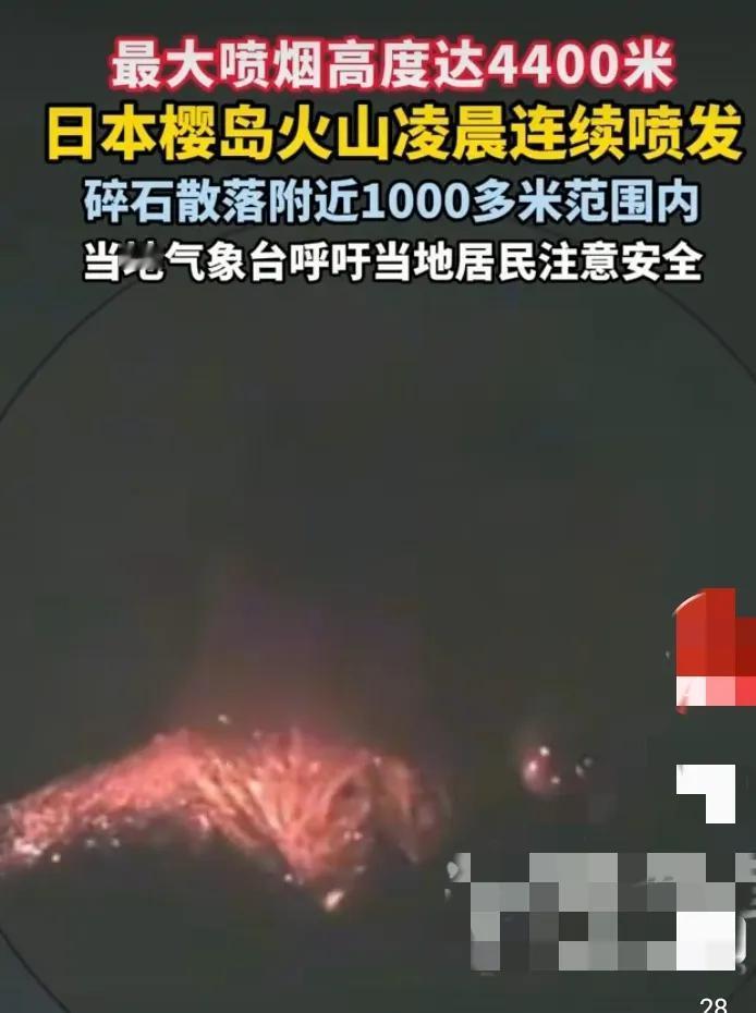 太可怕了!日本樱岛火山连续两次爆发,4座埃菲尔铁塔叠起来那么高的烟柱直冲天上,碎石飞出去1400米! 鹿儿岛机场已有约30个进出港航班被取消。将令国家陷入无可挽回的危机!可令人不解的是,一边地质灾害不停,一边还在排核污水,日本这波操作真让人看不懂。 据路透社11月16日报道,日本九州岛的樱岛火山16号凌晨先在0点57分喷发,烟柱冲到4400米高,过了1个多小时,凌晨2点28分又喷了一次,烟柱也有3700米。 这是近13个月来它第一次喷这么高,直接导致鹿儿岛机场30个航班取消,火山灰还飘到了旁边的宫崎县。樱岛本来就不“安分”,2024年都喷了89次了。 但这次大家格外关注,就因为日本还在偷偷排核污水。网友都怒了:“大自然都敲警钟了,核污水还照排不误,是嫌灾害不够多吗! 还有人吐槽:“一边怕富士山喷发做避难准备,一边又破坏环境,简直自相矛盾。”要知道,日本处在板块交界的地方,本来就是地震、火山的“重灾区”。 富士山都沉寂300年了,早就到了可能喷发的周期,专家说要是它喷了,2小时火山灰就能盖满东京,1600万人可能无家可归。可当局偏偏不把环境当回事,实在太离谱了! 中国地质大学的教授说,火山喷发是地球板块运动的正常情况,对全球生态影响不大,但正常不代表能不管。对樱岛周边的居民来说,火山灰污染空气、碎石砸坏房子、下雨还可能引发泥石流。 这些都是实实在在的危险,他们常年住在“火山阴影”下,出门担心,睡觉也不踏实。而日本排核污水的行为,更是坑了全世界,海洋是大家共有的家,这种自私的事真该停一停了。 大自然从来都是公平的,你尊重它,它就善待你;你无视它,它就给你颜色看。樱岛火山的喷发,不是灾难,而是提醒:人类在大自然面前特别渺小,与其想着对抗,不如好好敬畏和保护它。 希望日本能听懂这声警告,别再为了自己的利益破坏环境,毕竟保护环境不是某一个国家的事,是我们每个人的责任。也希望当地居民能做好防护,平平安安的。