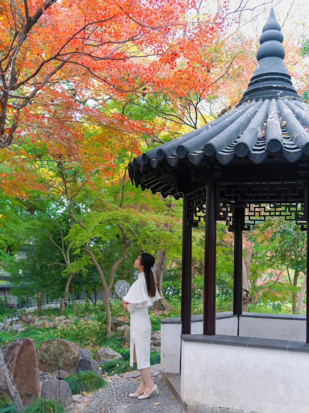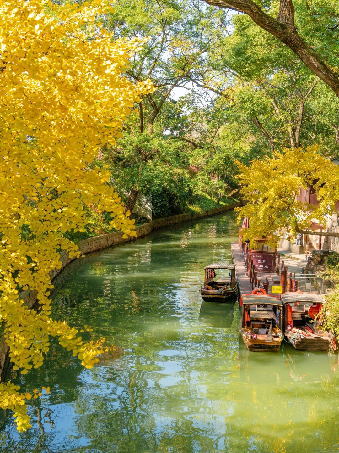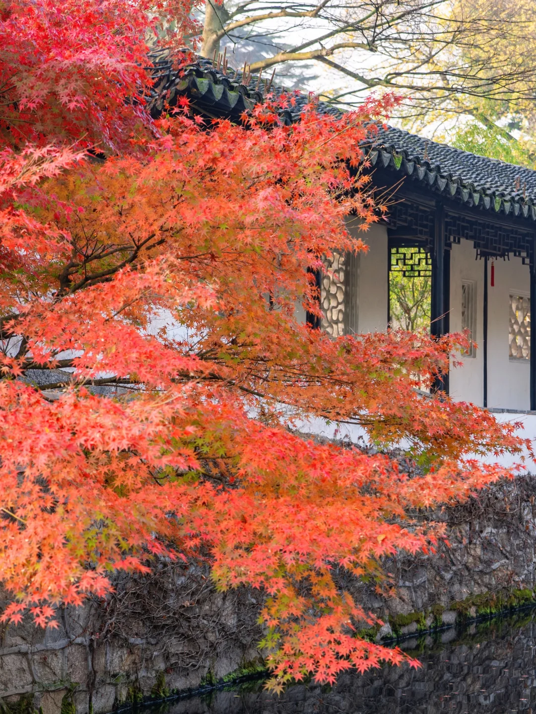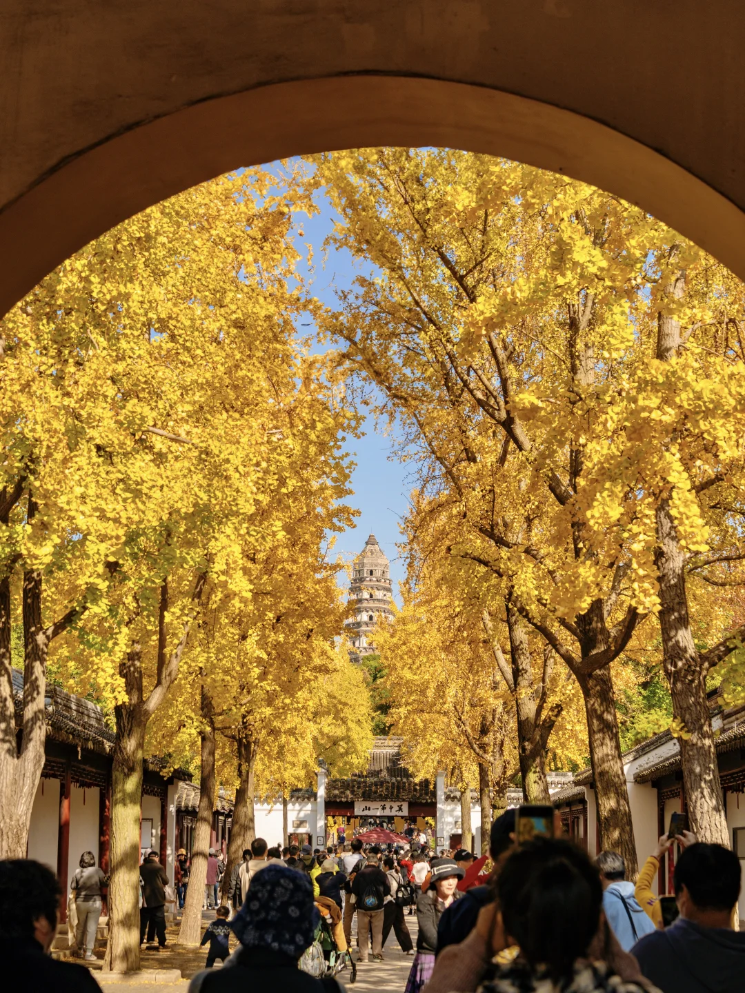 我眼中苏州赏秋天花板!南门虎丘塔下的银杏大道、进入景区后的河边银杏、第三泉的圆门洞、一榭园的红枫、明月阁的门和枫叶白墙,每一处都充满了江南的温婉诗意…