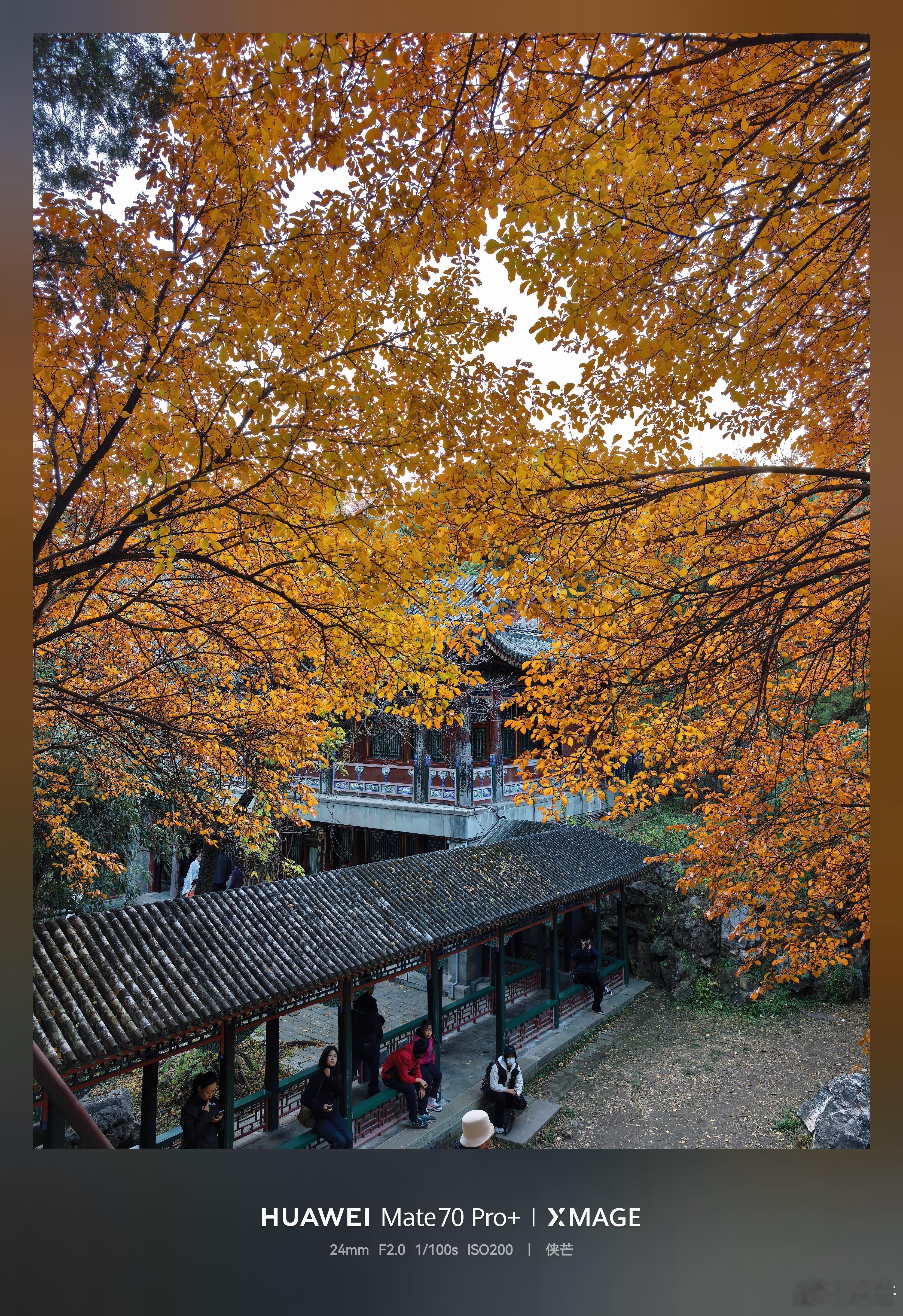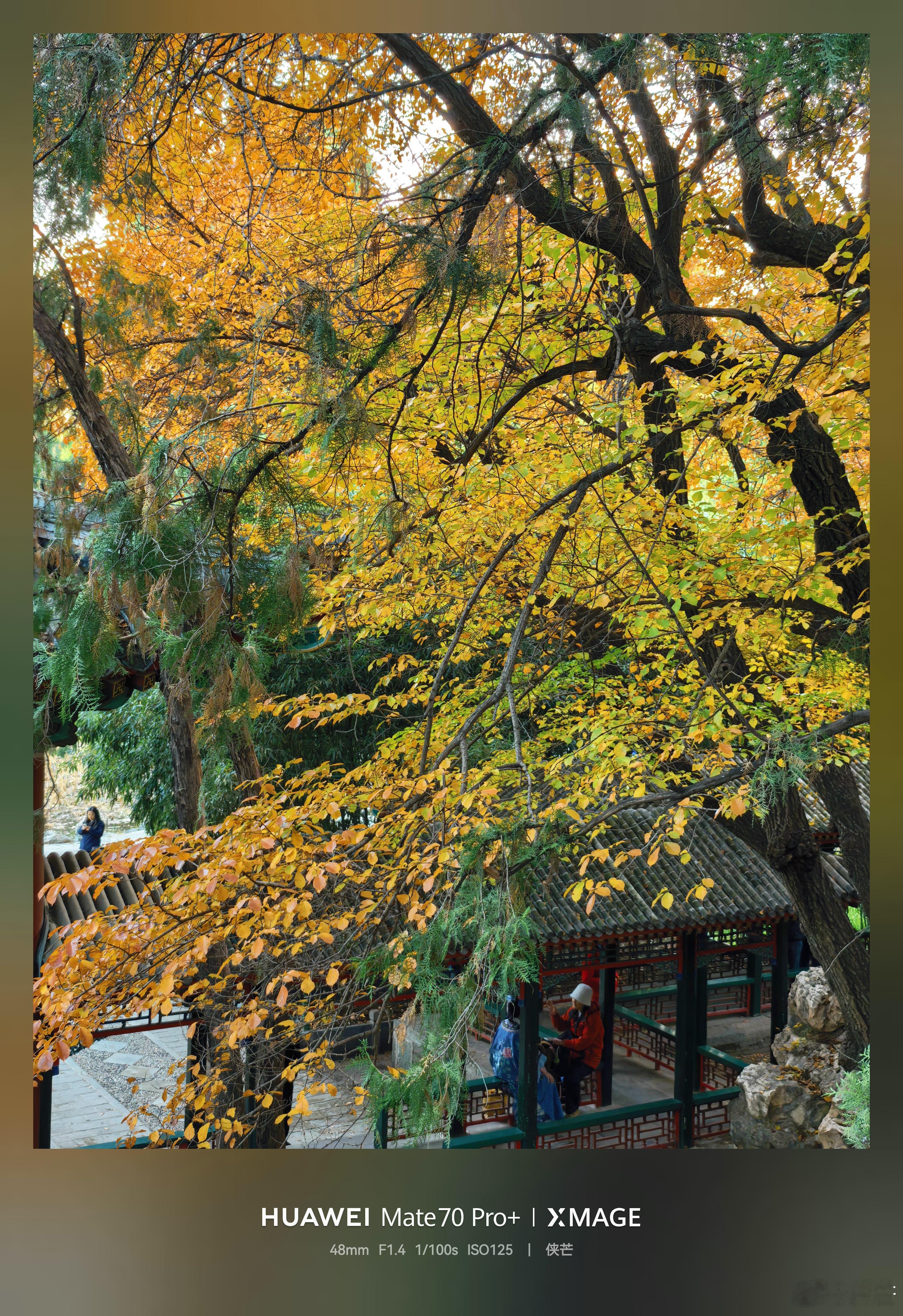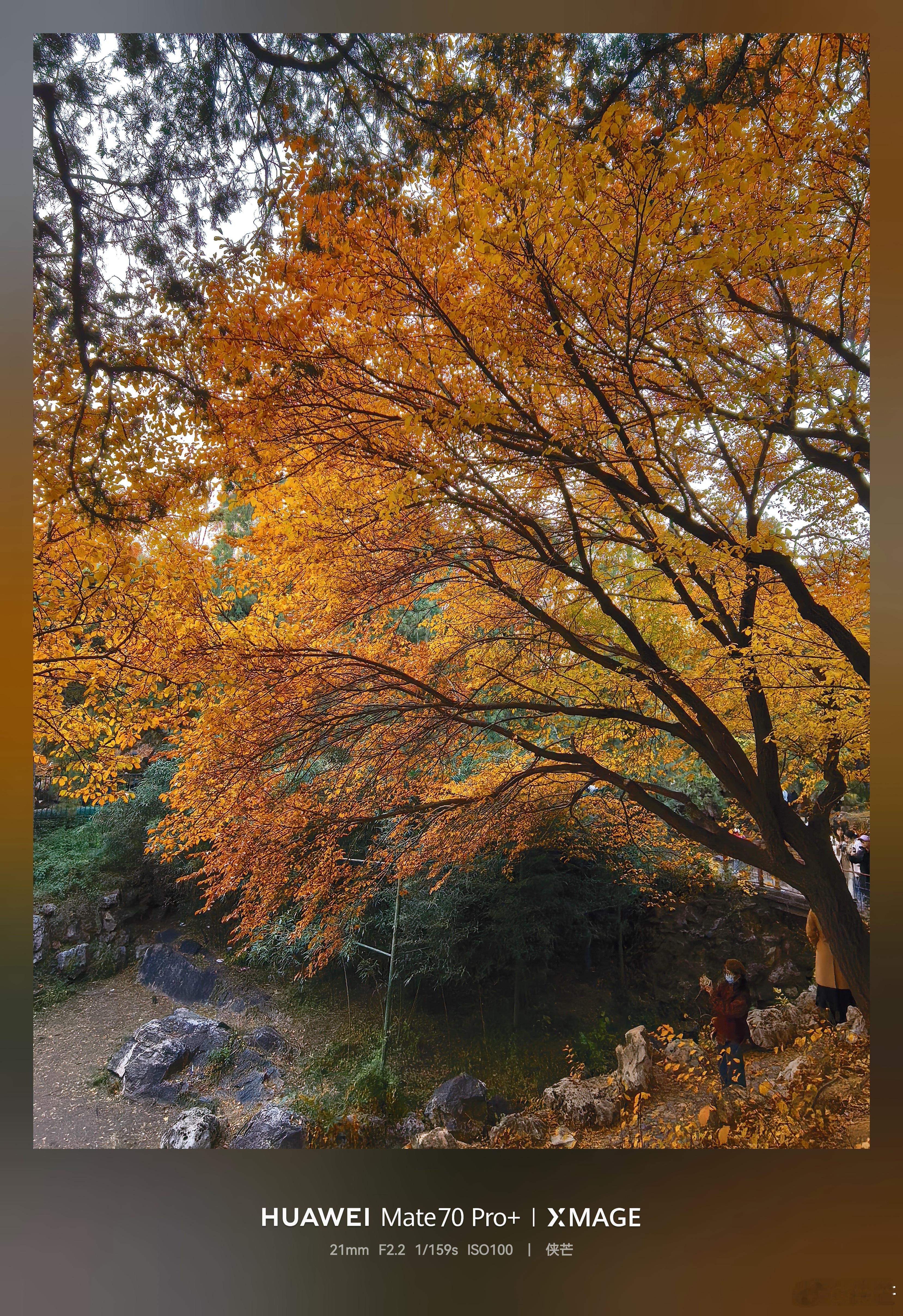 初冬谐趣园秋色 颐和园谐趣园内,涵远堂东西两侧的土石假山上,数十株大果榆自然生长,间植白蜡与黄栌,皆为北京乡土树种。初冬时节,树叶已由橙渐红,再转为棕红,层层叠叠,如霞似锦。斑驳的色彩在古雅亭台、灰瓦朱栏的映衬下更显风韵,与园林建筑相映成趣。 山石错落,树木斜出,一枝一叶皆顺势而生,透出自然与匠心的和谐之美。游人驻足其间,仰观红叶掩映飞檐,俯听风起落叶轻响,仿佛步入一幅流动的丹青画卷。此景不张扬,却最动人,恰应了“谐趣”二字的妙意——于静谧中见生机,于寻常处得雅趣。摄影