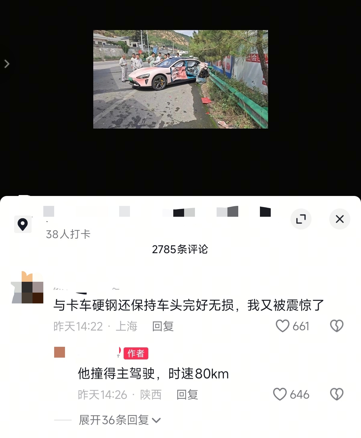 刷短视频,看到有辆SU7被“四骑士”时速80km/h撞击主驾驶,车主没有什么问题,车身结构完好,这样的侧面防护就说强不强吧。可惜的是短视频平台一到这种小米正向视频流量出奇的少,事情有几天了,其他平台也没见有人发一下,唉。