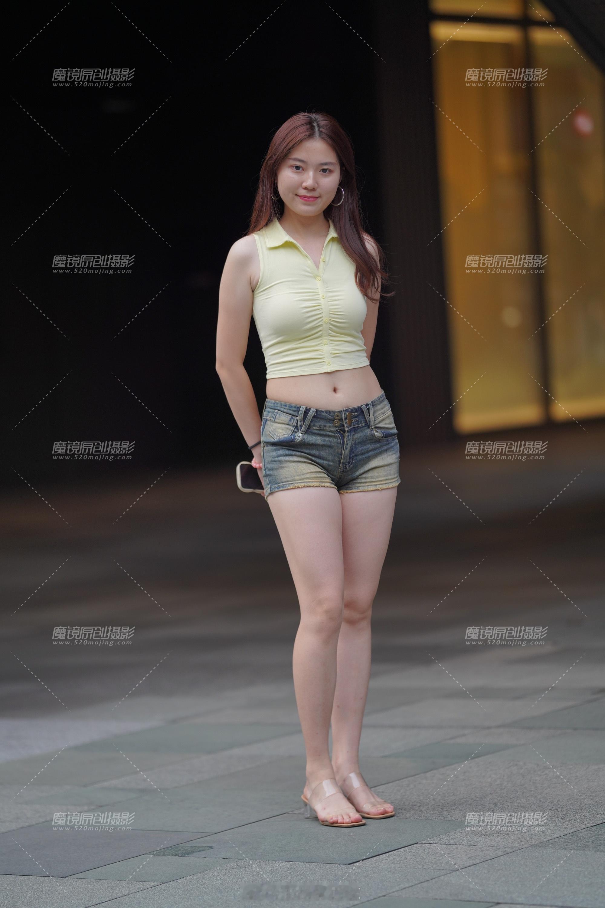 牛仔短裙配裹胸,腰美,腿更美!
