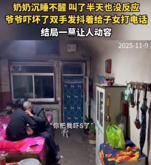 泪目了!山西,一老奶奶因睡眠不好,便吃了助眠药后躺在炕上就睡着了,这爷爷回家看到睡觉的奶奶后,就担心奶奶着凉,于是爷爷上前试图叫醒奶奶让其进屋去睡,可因为奶奶睡得太沉,爷爷怎么叫都叫不醒,吓得爷爷以为奶奶出了意外。可见,此时的爷爷吓得赶紧给孩子们打电话,期间更是忍不住的抹起了眼泪,害怕奶奶真醒不来可咋办。 “你咋睡这儿了?快醒醒,可别冻着啊!”一句再普通不过的叮嘱,却成了让人瞬间泪目的开场。 换成平时,哪怕睡得再沉,爷爷喊两声、轻拍几下,奶奶也能迷迷糊糊答应一句,可现在怎么叫都不动。那种恐惧,是一瞬间涌上来的。 爷爷声音开始发颤,一遍遍喊着奶奶的名字,手却不敢用力,好像怕碰疼,又怕碰不到。喊了几声仍没反应后,他整个人彻底慌了,赶紧给孩子们打电话,电话那头还没反应过来,爷爷已经急得掉眼泪。 几十年风风雨雨都过来了,可真正害怕失去的时候,人是藏不住情绪的。 然而就在爷爷擦着眼泪的时候,奶奶却突然坐了起来,那一下像把爷爷从深渊里拉了回来,他握着奶奶的手,生怕再松开就真丢了似的。两人随即紧紧抱在一起,奶奶还不停拍着他的背:“没事的没事的,我就是睡着了,你别吓着。” 那一幕,说不上壮观,却比任何场面都更能戳到人心里最软的地方。 明明是几十年的老伴,可在爷爷眼里,她依旧是那个需要保护、需要照顾的人。怕她冷,怕她摔倒,怕她不舒服,更怕她突然就离自己远去。 而奶奶的反应也让人鼻子发酸,她第一反应不是抱怨,而是安慰。没有嫌他的紧张多余,也没有笑他小题大做,只是轻轻拍着他,让他放心。 老一辈人的感情,大概就是这样。没有情话,没有誓言,没有仪式。可是一个害怕的眼泪,一个紧张的电话,一个迅速蹲下去的动作,就足以说明所有深藏在心底的牵挂。 很多网友看到后都说“这就是爱情最真实的样子”。说实话,确实如此。年轻时的爱可能是心动,是浪漫,是想牵你的手。可年老后的爱,是担心,是害怕,是你睡得太熟,他以为你出了意外,是你没动,他整颗心都揪起来。 这让人不禁想起一句话:人到老年,最大的幸福不是财富,也不是儿孙满堂,而是枕边还有个人,能让你放心。怕你冷,怕你疼,怕你突然不说一句话就离开。 爷爷的恐惧不是因为他脆弱,而是因为他真的在乎;奶奶的安慰不是因为她大度,而是因为她懂他。 这种感情,看似平凡,却是最难得的。 信息来源: 星视频丨奶奶吃药后睡得太沉,爷爷喊不醒吓到流泪,打电话喊家人手都发抖 观象视频丨奶奶沉睡不醒,叫了半天也没反应,爷爷吓坏了双手发抖着给子女打电话,结局一幕让人动容 文丨小王 编辑丨史叔