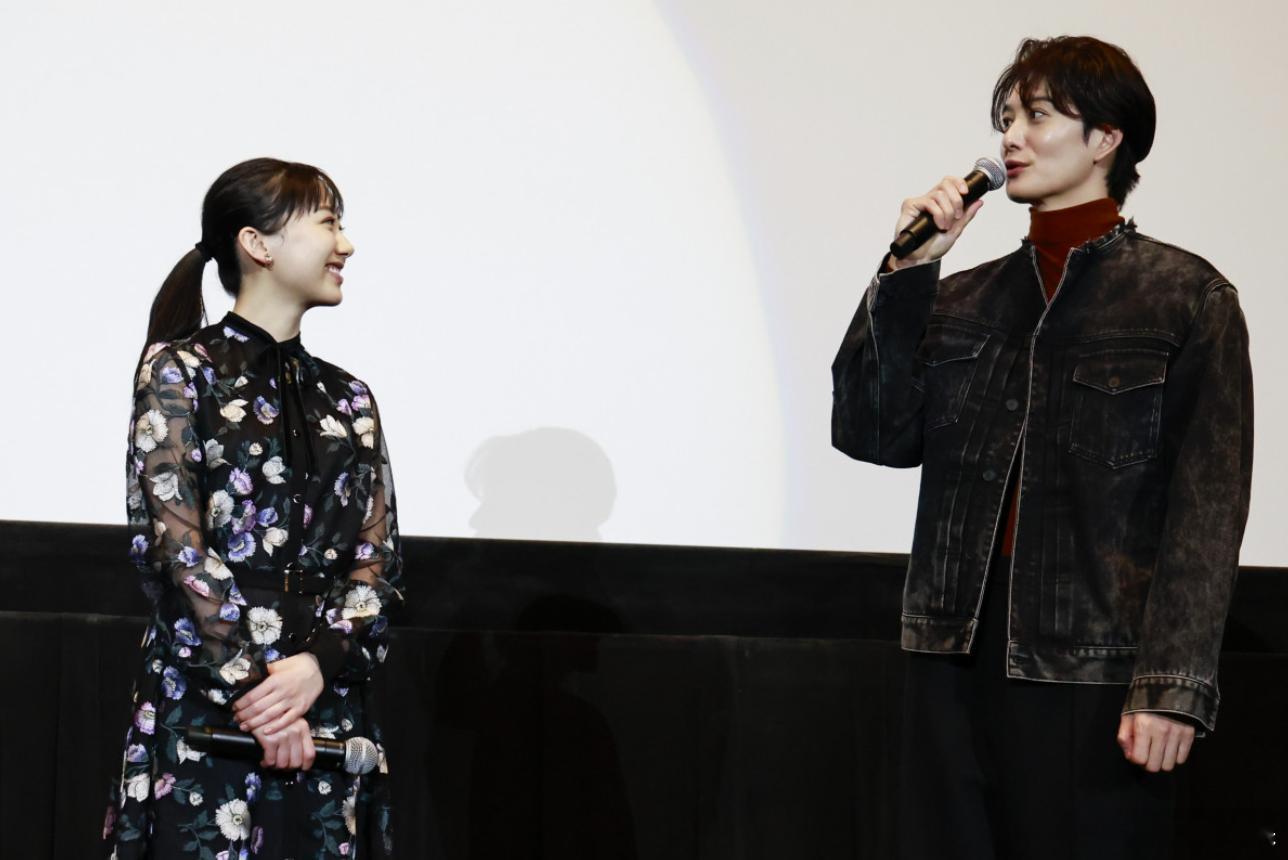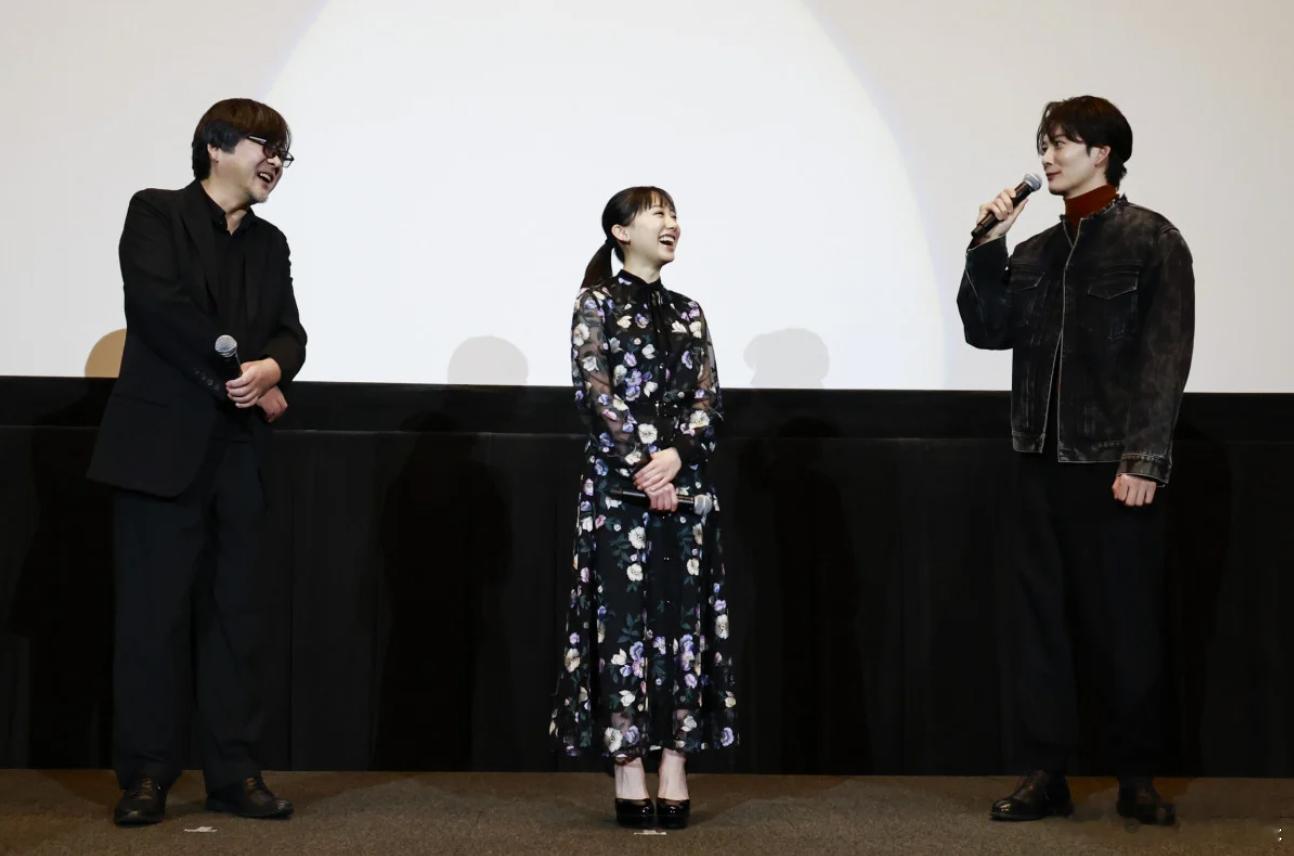 芦田爱菜、冈田将生以及导演细田守出席长篇动画电影《无尽的绯红》(11月21日上映