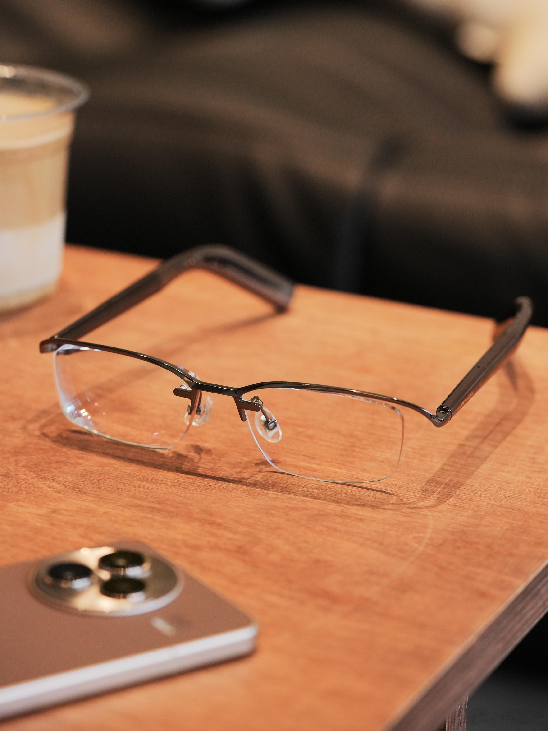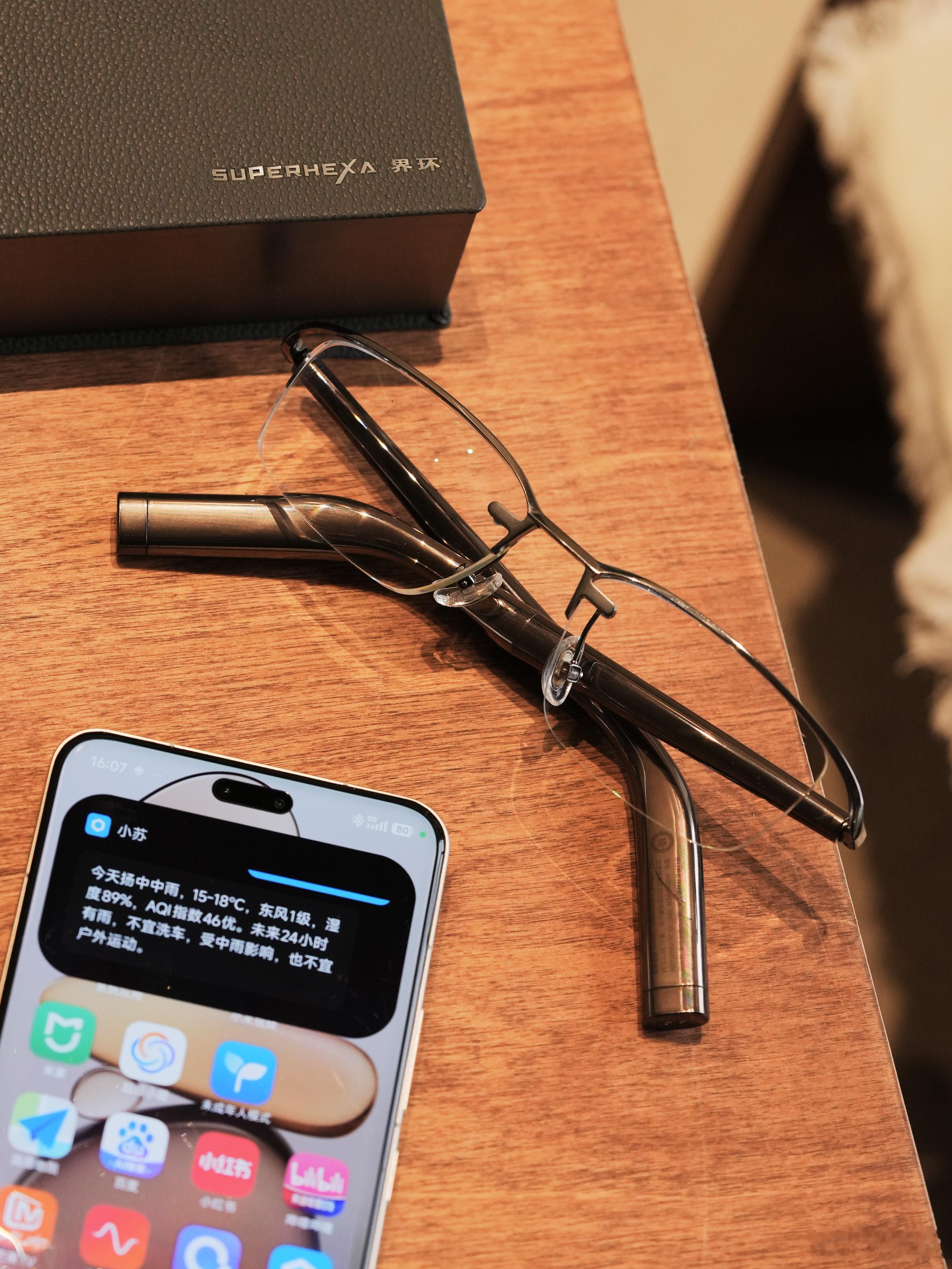 界环AI音频眼镜特别版,我觉得相比上一代最明显的升级就是外观更好看,重量更轻,同时续航还更长了航空级钛金属材质,既坚固耐用又具有高级质感。眼镜前腿是Unibody一体成型的,最细的地方仅有5mm,非常精致。钛金属还有一个优点就是轻盈,因此钛无框款的重量最轻只有26.4g,像我这个钛半框款也只有28.5g,佩戴起来其实就和普通眼镜的感觉差不多,不会觉得累。内置的电池容量来到了118mAh,比同级产品更大,可以连续播放14小时的音乐。这些是基础体验的提升与此同时它还是一款AI眼镜,语音唤醒AI助理小苏,支持连续对话长记忆功能,可以问他任何问题或者没事聊聊天。我觉得其中最好用的就是全场景录音,面对面对话、打电话、视频会议等场景都支持录音,并且他是能自动识别发言人,同时帮你提炼要点,生成文档会议纪要等,十分方便一款颜值高同时还比较实用的AI眼镜