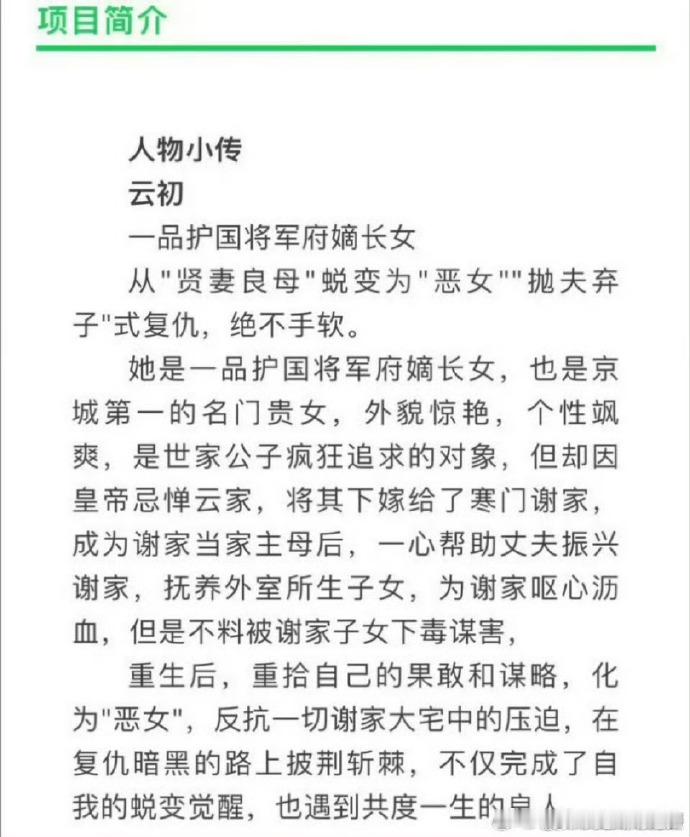 改编自朝云紫作品,《云初令》暂定 12 月开机,女主从贤妻到 “恶女” 蜕变,反