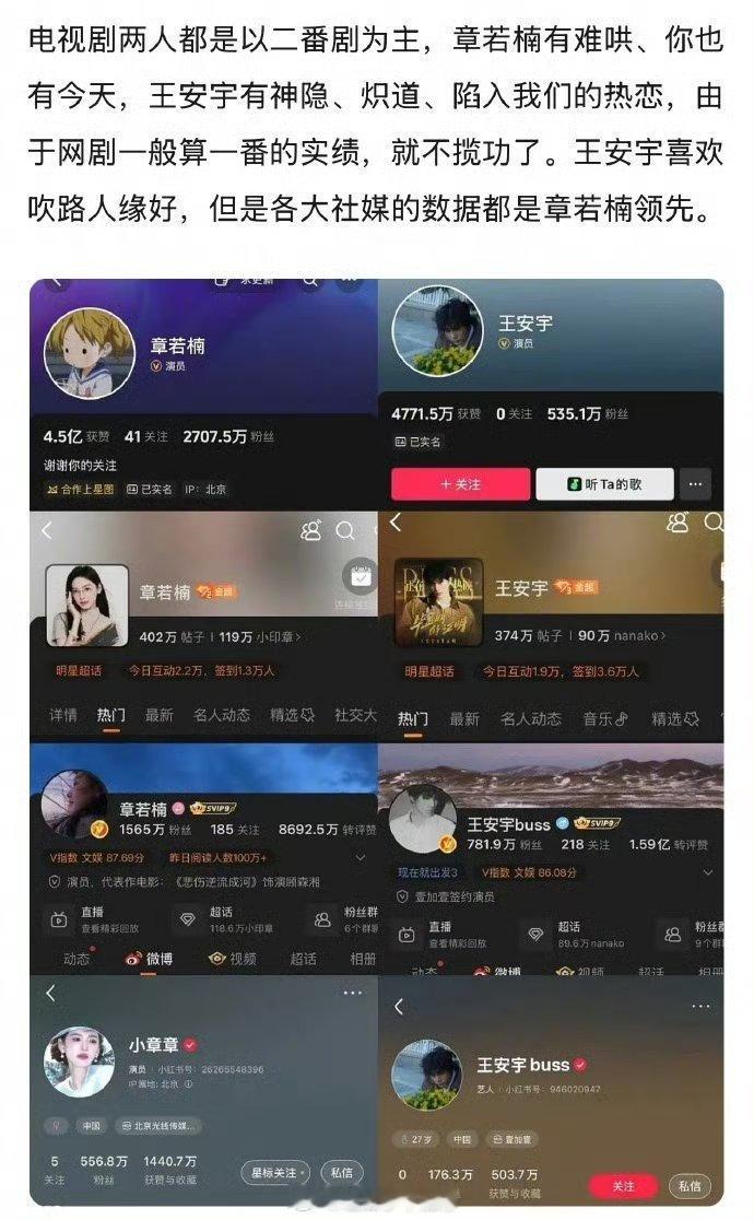 章若楠王安宇实绩对比🆚