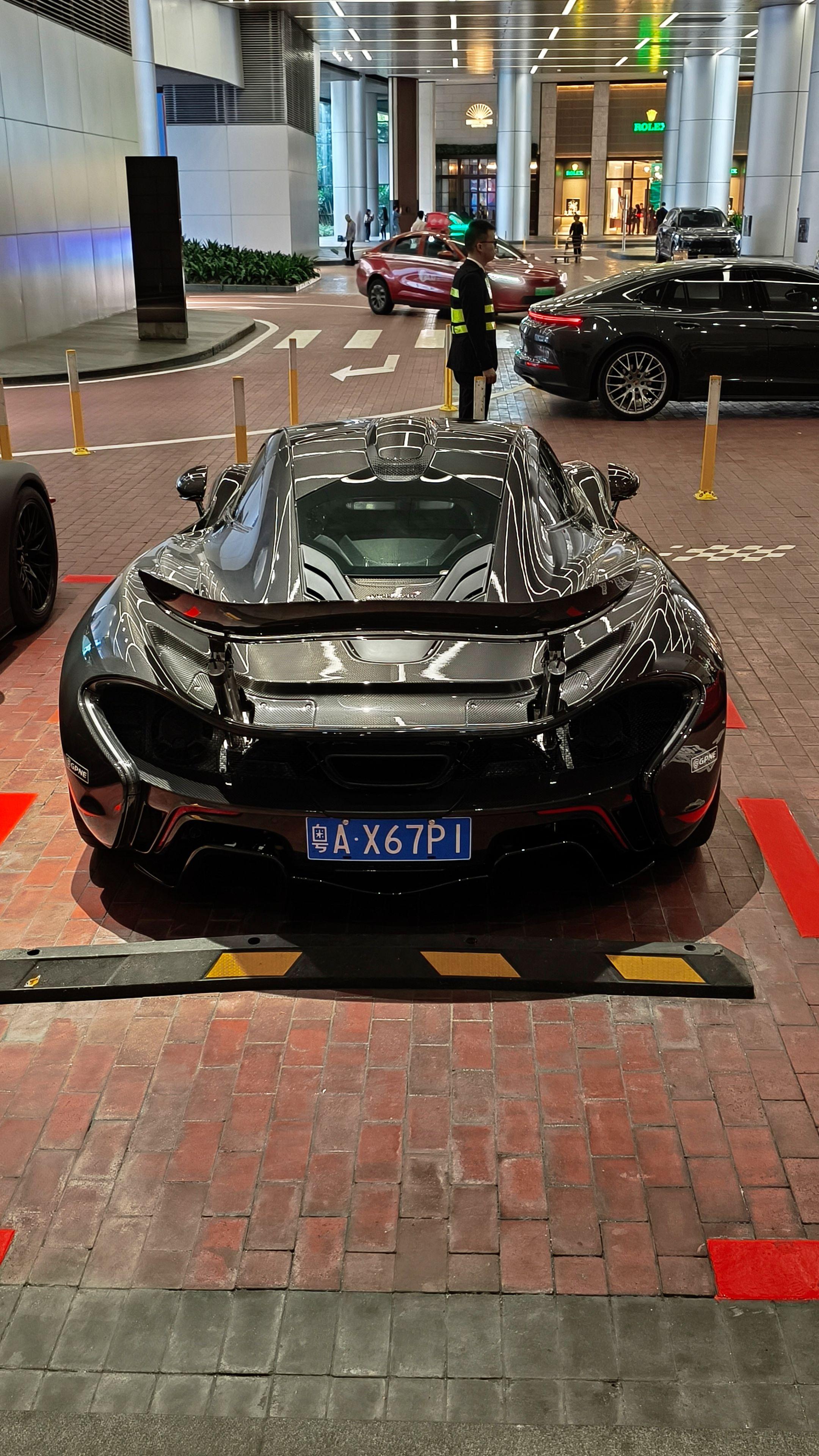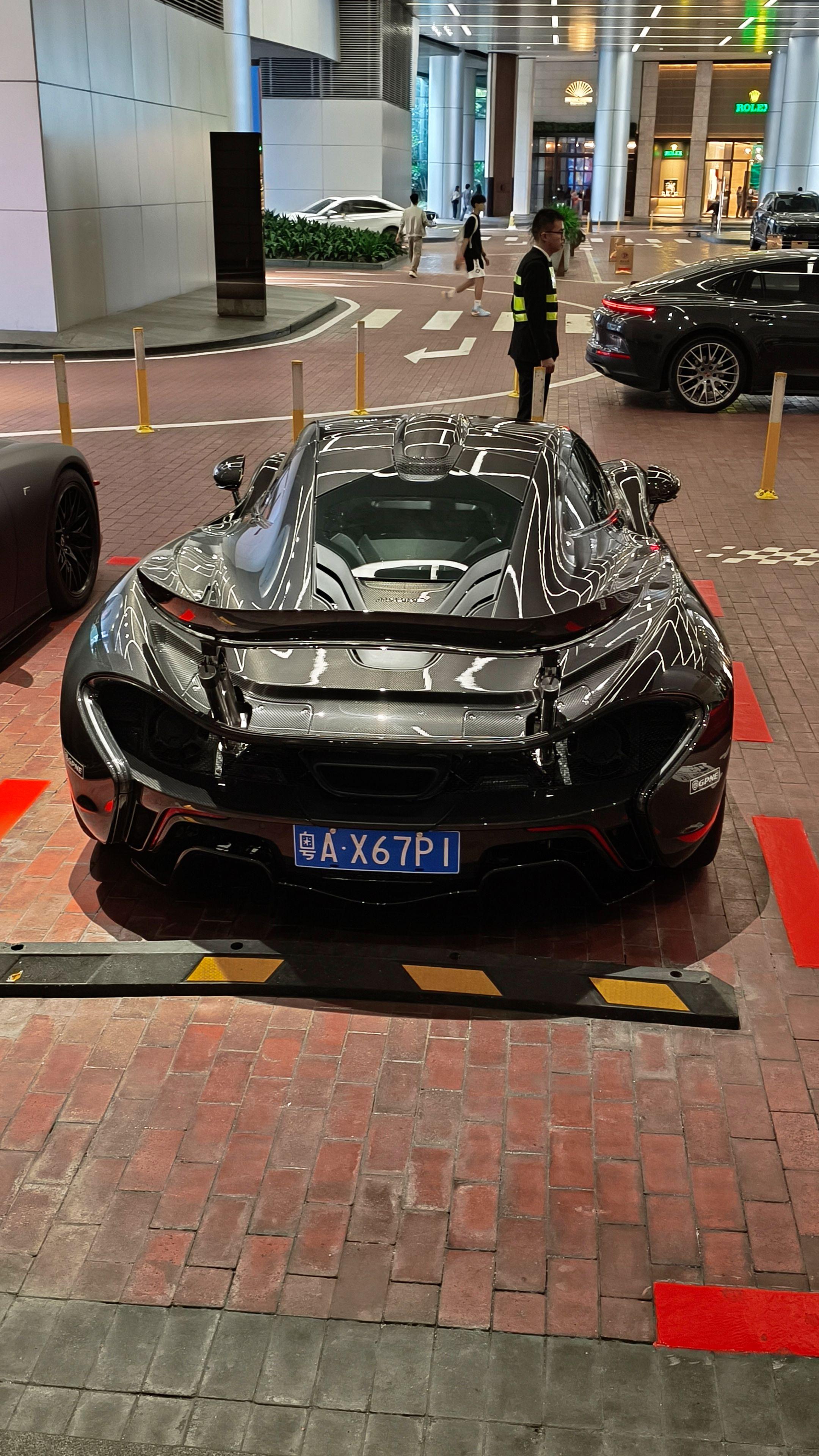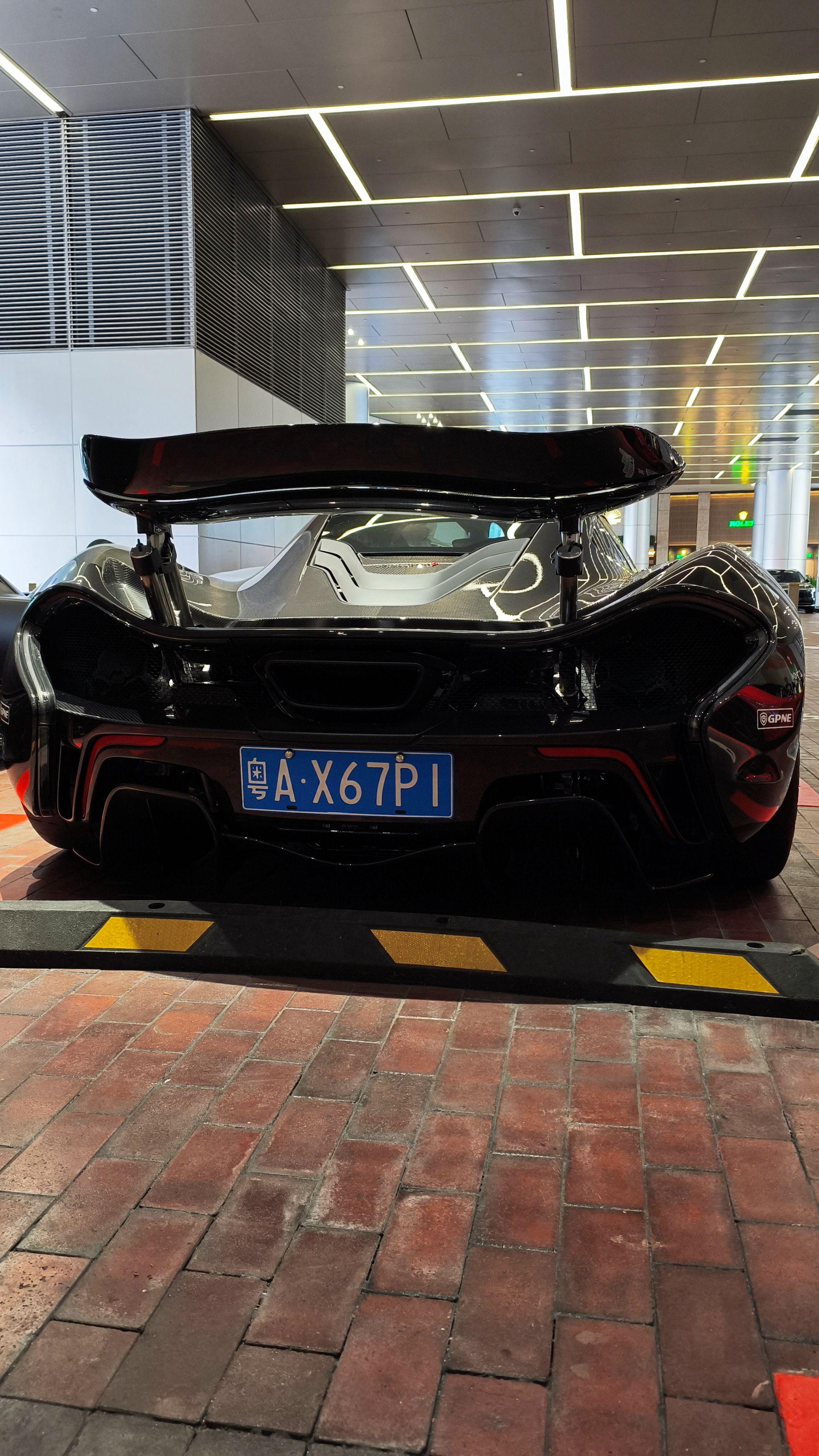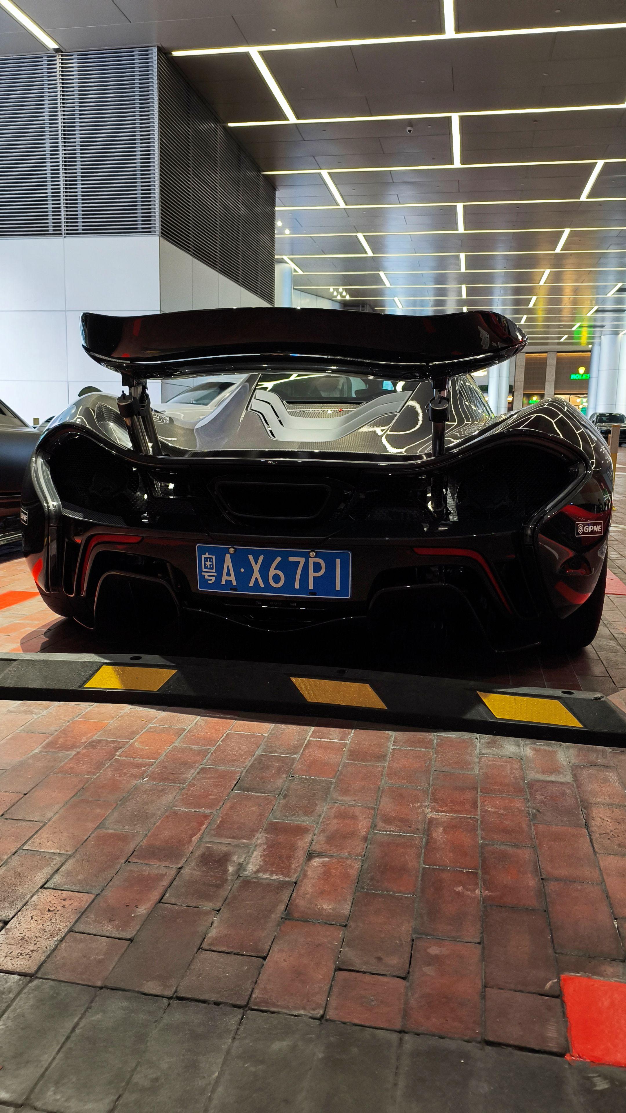 在广州太古汇偶遇玩车大佬座驾迈凯伦P1,全车都是裸碳外观原厂大尾翼,实车看到太帅了