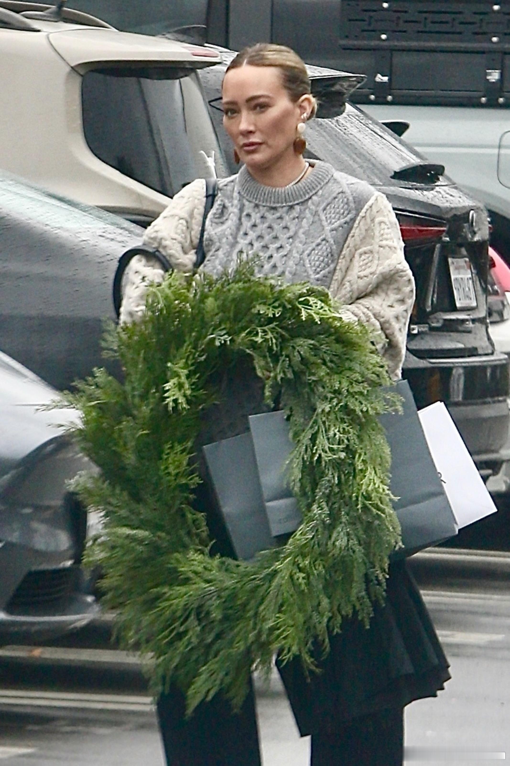 希拉里达芙在斯蒂迪奥城外出,达芙买了一个大的圣诞花环还有好几袋圣诞装饰用品后离开商场
