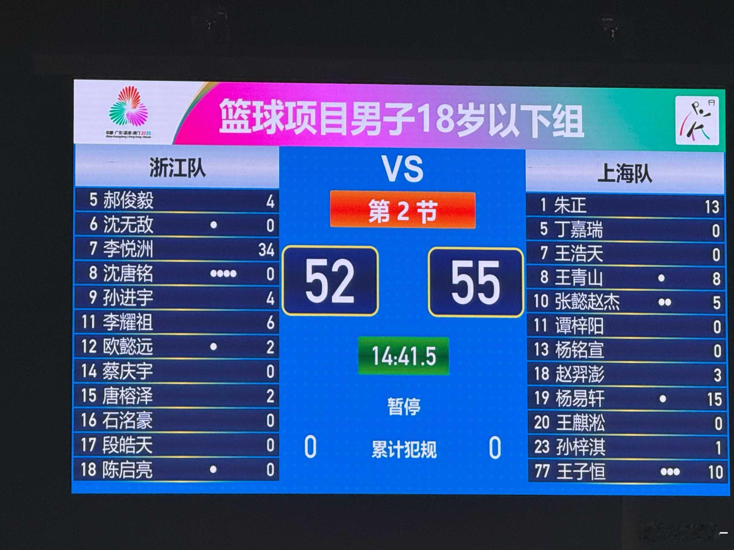 全运U18,浙江队后卫李悦洲出战5场比赛,场均40.4分3.6篮板4.4助攻1.8抢断,投篮命中率45.9%。在1/4决赛面对四川,李悦洲狂轰51分!现在铜牌战,李悦洲半场拿到34分!网友:5分钟内我要他的全部资料!!!