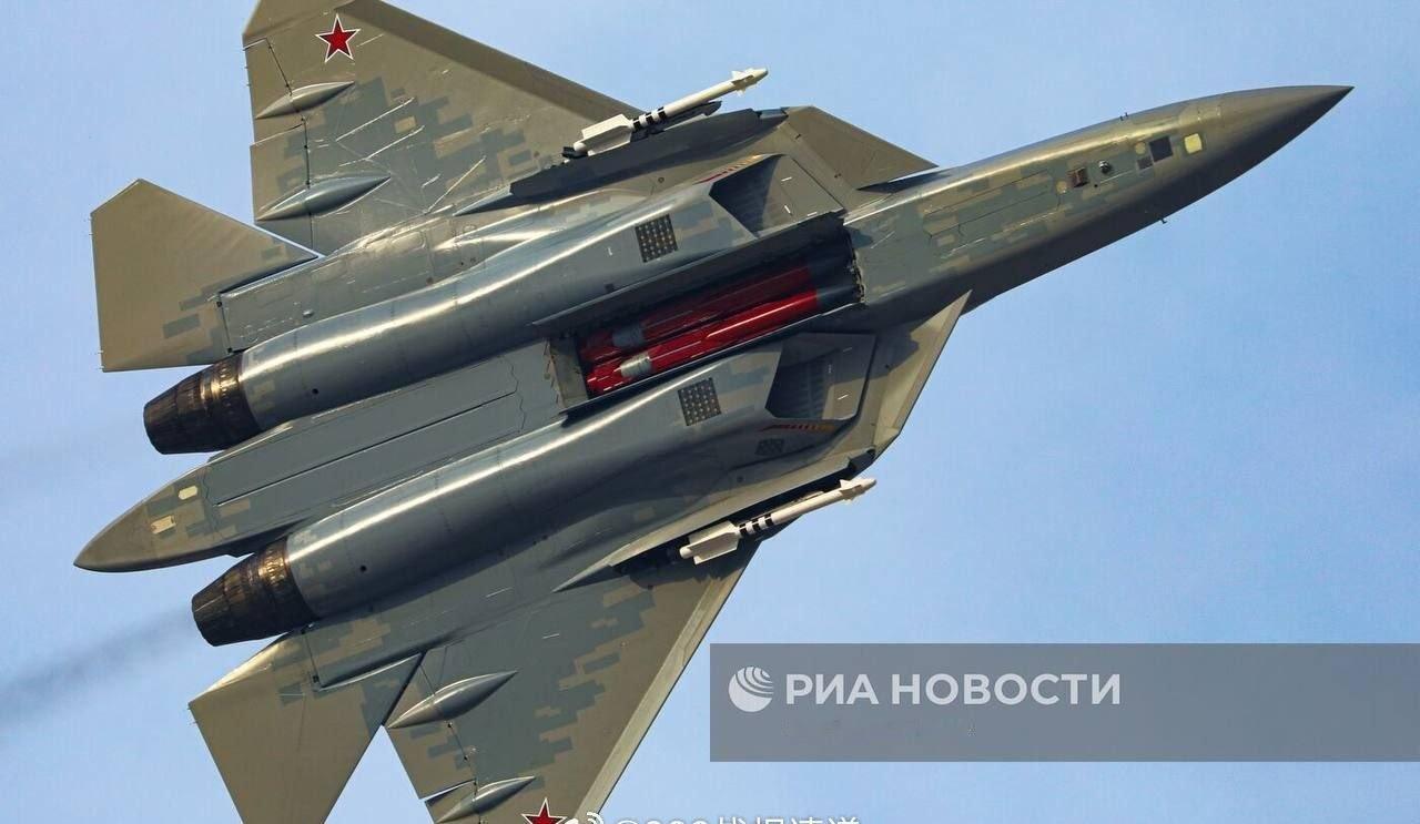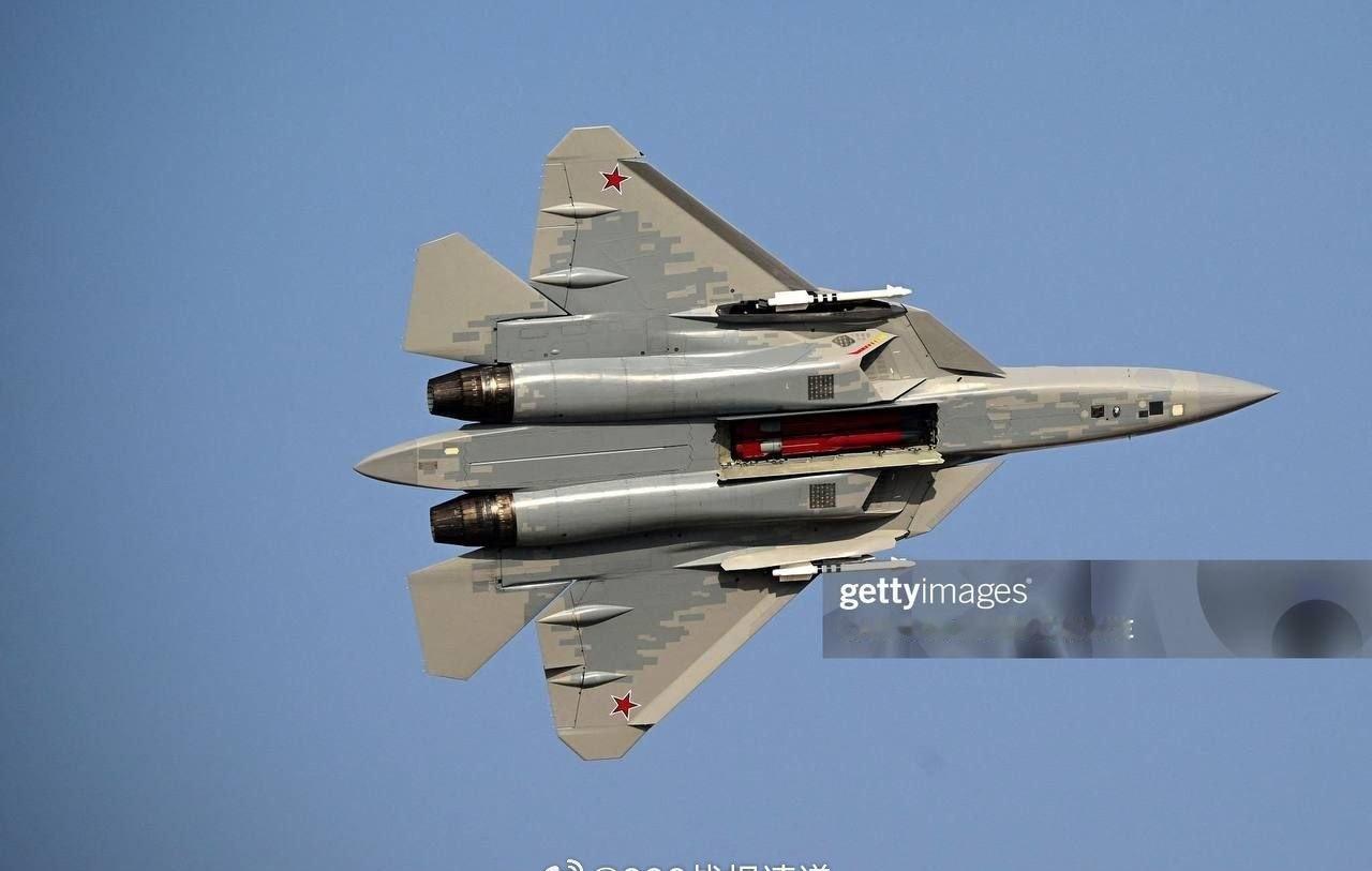 俄罗斯苏-57E(T-50-9)战斗机在2025年迪拜航展进行飞行表演时的画面。 与航展开幕前的训练飞行一样,在航展飞行表演过程中,该战斗机展示了侧方内置弹舱中携带的R-73M/E RVV-MD/RVV-MD2空对空导弹,以及中央机身内置弹舱挂载的Kh-58UShKE反辐射导弹。 每天认识一件兵器武器装备烽火问鼎计划