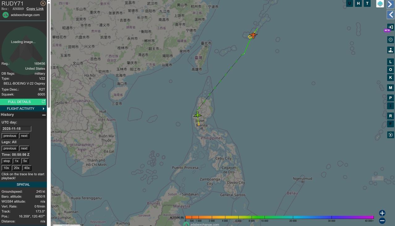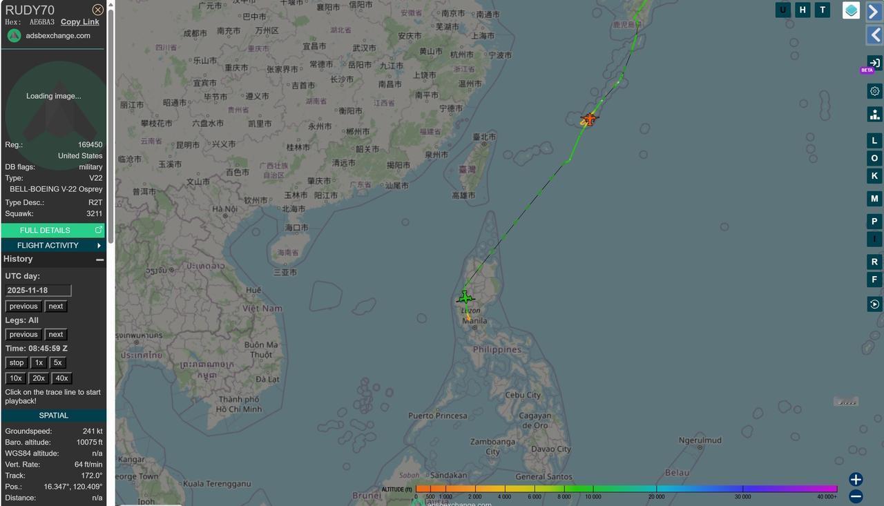 尼米兹号刚走,华盛顿号即将进入南海——11月18号,美国海军华盛顿号航母(CVN-73)上的3架CMV-22B“鱼鹰”舰载运输机同时从岩国海军陆战队航空站经普天间空军基地,飞抵菲律宾克拉克空军基地,此举表明,华盛顿号很可能将在未来1~2天内进入南海活动。 11月17号,在南海持续活动了31天的尼米兹号(CVN-68)航母打击群经佛得岛水道离开南海。 ➤尼米兹号刚走,华盛顿号就补上了,想要无缝衔接吗?尼米兹号掉了1架F/A-18F和1架MH-60R,华盛顿号准备掉两架F-35C不?