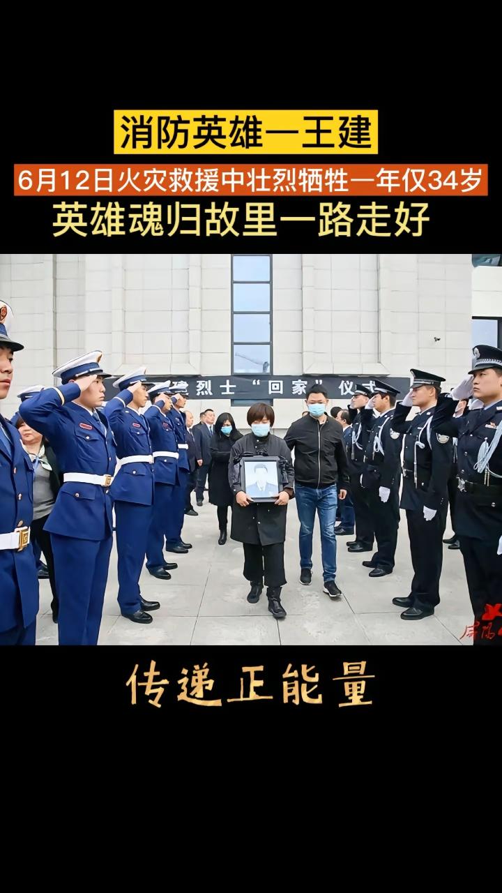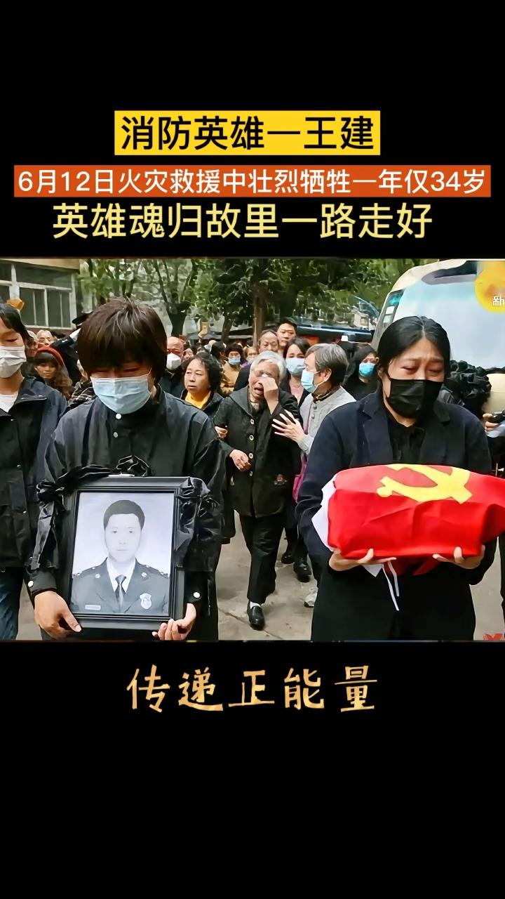 在北京大兴火灾牺牲消防员王建烈士魂归故里家乡数万父老乡亲含泪迎接英雄回家。去时少年郎,归时英雄魂。让人泪目传递正能量致敬英雄泪目