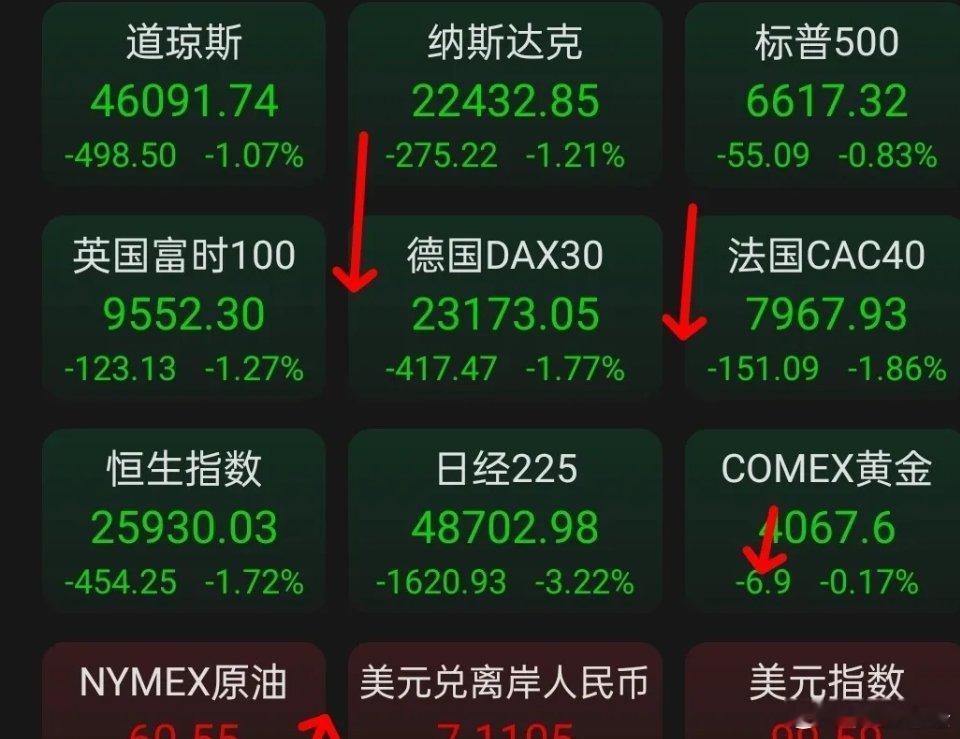 全球市场普跌下的A股与港股展望周二全球股市集体走弱,欧美市场延续下跌态势:道指下跌1.07%,纳指跌1.21%,标普500指数跌0.83%,英、德、法三大欧洲股指跌幅均超1%。大型科技股普遍承压,亚马逊大跌超4%,微软跌2.7%,英伟达跌2.81%,特斯拉跌1.88%,存储芯片龙头美光科技跌幅达5.5%。热门中概股涨跌分化,纳斯达克中国金龙指数涨0.42%,恒生科技指数期货涨0.89%;爱奇艺大涨6.34%,百度、金山云涨幅超2%,阿里巴巴、网易涨超1%;拼多多虽发布利好财报,股价却大跌超7%。商品市场方面,黄金期货小幅下跌,石油期货上涨1.1%。外围市场低迷背景下,A股能否走出独立行情引发关注:上证指数呈现“三只乌鸦”形态,市场普遍预期难现4连阴;创业板指数已提前完成60日线回踩,后续需观察能否止跌企稳,科技板块仍将持续承受考验。展望今日市场,恒生科技指数具备反弹潜力(估值低位+南向资金托底+权重股回购支撑)。资金面来看,昨日多空比看涨部位下降,科创50指数连续处于0.6以下的低位区间,当前已具备绝佳的分期买入机会。