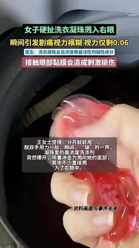 “悲剧还是发生了!”近日,浙江杭州,一女子洗衣服时,发现洗衣凝珠黏在了一起,她用力撕扯时,凝珠发生了爆炸,大量洗涤剂溅入眼睛! 女子瞬间看不清东西,而且眼睛传来剧烈的疼痛,送往医院检查,发现视力仅剩0.06。网友:还是洗衣粉安全! 洗衣凝珠,看起来小巧,里面装的是高浓度的洗涤剂,外面包着一层水溶膜,这膜一遇水就化了,洗衣服是方便了, 可是这玩意,也太娇气了吧,稍微热一点,潮湿一点,就容易黏在一起,甚至破裂,想想夏天,太阳那么晒,洗衣凝珠放在阳台上,不出事才怪, 很多人觉得洗衣凝珠是“懒人神器”,随便一放就行,根本不看说明书,也不知道这玩意有多娇气,洗衣凝珠的安全性,真是让人担心,很多人看完这个事故,都会去想这事有多可怕。 洗衣凝珠出事,到底是谁的错,生产商肯定有责任,他们的警示信息,太小了,藏在包装角落里,谁会注意看,而且洗衣凝珠的设计,也有问题,就不能用更耐高温的膜材料吗,或者在包装上,加个温度提示,提醒大家别放在高温的地方,消费者也有责任,安全意识太薄弱了,对这种新型化学品,根本不了解, 为了安全,我们得做点什么,家里有洗衣凝珠的,赶紧检查一下,看看放哪了,别放在阳光直射的地方, 也别放在卫生间,太潮湿了,如果洗衣凝珠黏在一起了,千万别用手撕,用干毛巾擦拭,或者等它冷却后再分离, 企业也要负起责任,加强产品安全设计,用更醒目的警示语,提醒消费者,开发更安全、耐用的膜材料,社会也应该加大科普力度, 提高公众对新型家用化学品的安全意识,通过媒体宣传,普及安全使用知识,这事,大家都得重视起来,不要再有下一次了,想想都害怕,别再有人受伤了。 科技是为了方便生活,但不能以牺牲安全为代价,洗衣凝珠,本来是想让大家更轻松,结果却成了安全隐患, 我们不能忘记,细节决定成败,从小处着手,才能守护家人安全,构建安心生活,我们要享受科技带来的便利,同时也要注重风险防范 洗衣凝珠这事,给我们敲响了警钟,安全第一,永远不能忘记,洗衣凝珠的教训,希望能让我们更重视安全,让生活更美好,大家都希望平平安安的,真的。 很多家庭洗衣凝珠随便放,大人觉得没事,小孩子可不知道,万一好奇误食,那可就糟了,想想都后怕, 新闻里也报道过类似的事情,孩子误食洗衣液,进了医院抢救,大人真的要看好了,别让孩子接触到这些危险的东西, 洗衣凝珠颜色鲜艳,形状可爱,小孩子很容易当成糖果,所以一定要放在孩子够不着的地方,平时多留个心眼,就能避免很多意外,这可不是小事,安全无小事啊。 洗衣凝珠的包装设计,也有改进的空间,现在的包装,大多是塑料盒,或者塑料袋,盒子容易被孩子打开,袋子又不容易保存,能不能设计一种更安全,更方便的包装呢, 比如用带锁扣的盒子,或者用可以重复密封的袋子,这样就能有效防止孩子误食,也能方便大家存放 包装上可以印一些醒目的安全提示,比如“请勿吞食”,“远离儿童”,用大字号,用鲜艳的颜色,让大家一眼就能看到,这些细节,都能提高洗衣凝珠的安全性,厂家应该多花点心思在这上面 除了家庭,企业和社会,我们每个人都应该行动起来,共同守护安全,洗衣凝珠这事,给我们提了个醒,新型化学品,虽然带来了便利,但也带来了风险, 我们不能盲目追求便利,而忽视安全,安全第一,这不只是一句口号,而是应该贯穿到我们生活的方方面面,从洗衣凝珠开始,让我们更加重视安全,让生活更加安心,大家都知道安全的重要性吧。 希望洗衣凝珠的生产商,能够听取消费者的意见,不断改进产品设计,提升产品安全性,希望政府部门能够加强监管,制定更严格的标准,规范市场秩序,希望媒体能够多做安全宣传,提高公众的安全意识,希望我们每个人都能够重视安全 我们不能只关注洗衣凝珠,还要关注其他新型家用化学品,这些东西,虽然给我们带来了便利,但同时也可能带来安全隐患,比如洗洁精,消毒液,空气清新剂等等, 这些东西,都含有化学成分,如果使用不当,或者存放不当,都可能对健康造成危害,我们要学习更多的安全知识,提高安全意识,正确使用和存放这些东西,保护自己和家人的安全,安全知识,多多益善。