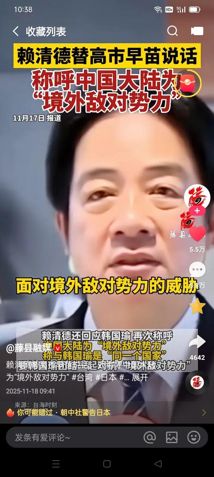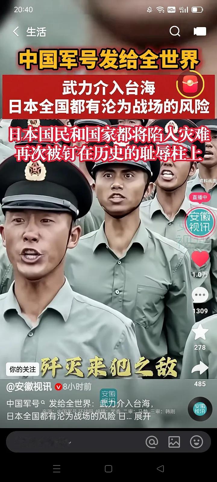 菩萨心肠保卫和平·霹雳手段斩妖除魔 ~必须坚决消灭台独叛国贼和日本军国主义 *日本毒苗公然叫嚣要使用武力、甚至谋求核武器来对付中国、阻止中国统一台湾省!这就是要完全复活日本军国主义,并且复制甲午战争和全面侵华战争! 面对中国史无前例的严正交涉,日本政府依然冥顽不灵、我行我素,强硬拒绝收回武力干涉台湾的企图! 同时,面对中国解放军在黄海的军事演习,日本军队也立刻针锋相对地进行了大规模军演,还贼喊捉贼地抗议中国海警巡航钓鱼岛! *台独首恶逆贼赖清德这个癞蛤蟆也蹦起来了,公然为日本毒苗武力干涉台湾的发言摇旗呐喊,并且侮辱中国是‘企图侵略台湾的境外敌对国家’! 癞蛤蟆还说日本和美国通过《美日安保条约》增强密切关系,有利于‘捍卫和平 保护台湾’! *中国官方已经严厉警告日本:如果日本胆敢武力介入台海,那么日本全国都会沦为战场,日本国民和国家都将陷入灾难,并且再次被钉在历史的耻辱柱上! 中方这一的表态,是光明正大、义正辞严的,也是异常坚决和强有力的!充分表达了中国保卫国家主权、民族尊严和世界正义和平的坚强意志和坚定决心! *这一次中国必将深刻汲取历史的经验教训,完全彻底地消灭日本军国主义势力,清算日本的战争侵略罪行,最大限度地保护自己、消灭敌寇! 同时,我们也要坚决消灭台独势力,彻底清除台湾省的日本遗民和台独叛国贼!惟其如此,才能实现中国的安定团结和长治久安!