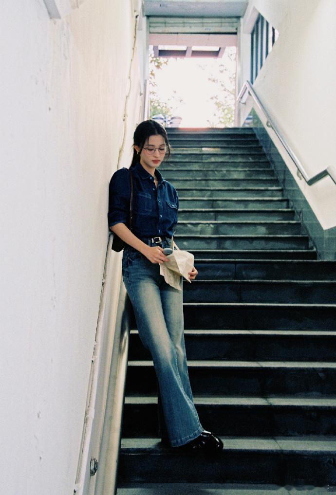 王楚然眼镜牛仔衣高智感,哦莫哦莫被这个王楚然美晕了,完全高智感姐姐啊