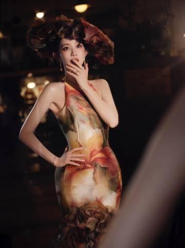 啊啊啊啊啊 孟子义挂脖露背繁花裙