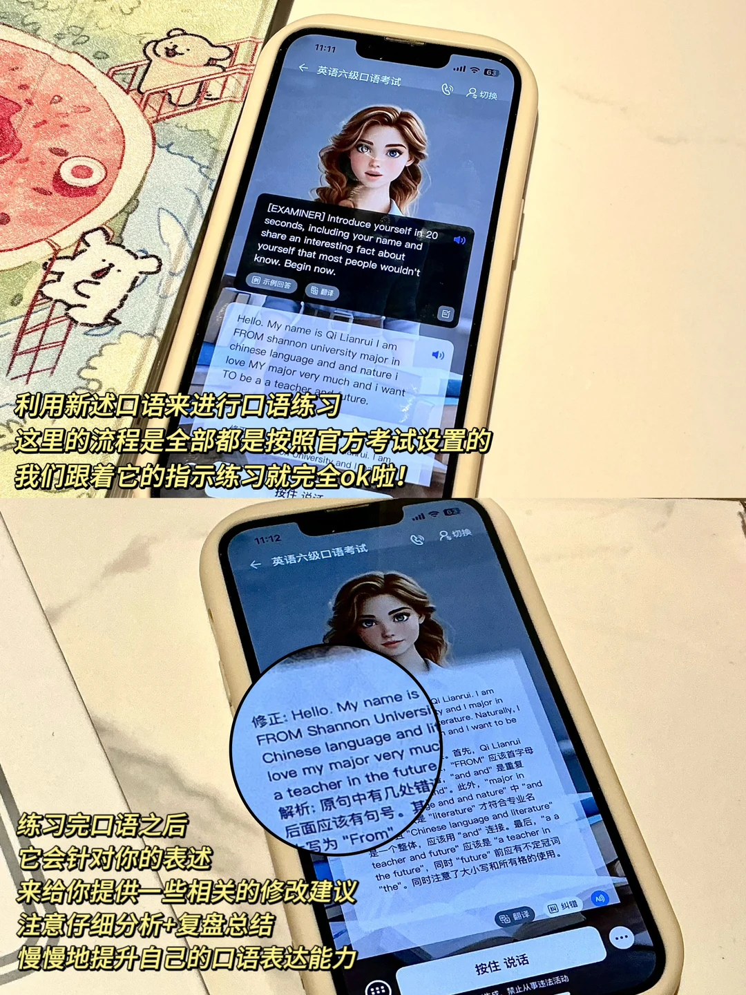 🧰口语方面可以跟着新述口语进行练习,按照它给你提供的四个部分来进行练习即可。它为你完整地还原了考试流程,所以在练习的过程中一定要注意自信地开口说,把每个字音都吐清楚。练习结束之后AI会为你纠错并提供你的口语优化建议。做完练习之后可以看一下每道题的参考答案,尝试模仿一下标准答案的回答方式,慢慢你的回答也会更好!