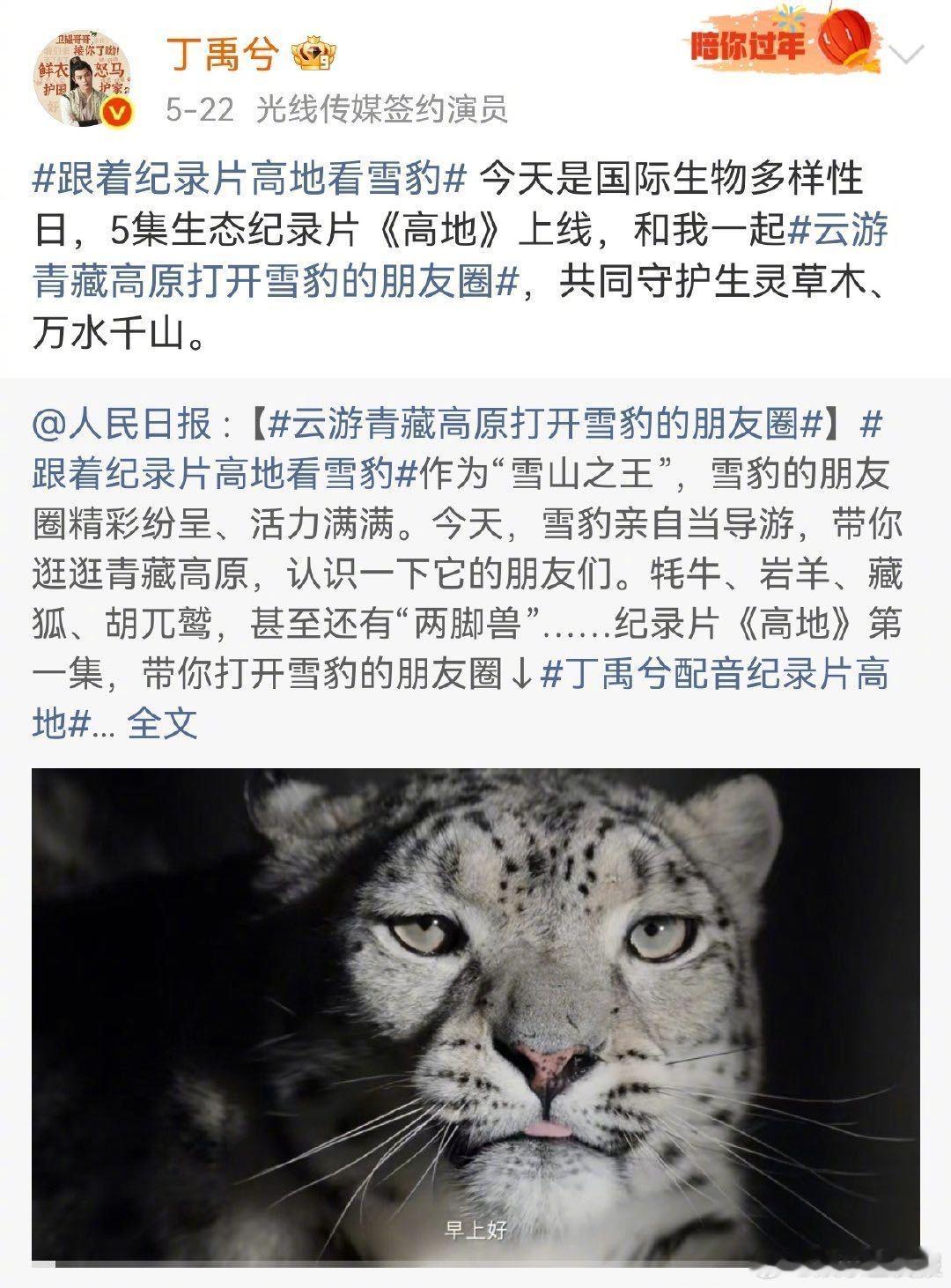 现身COP30现场~不管是把溺水的北极熊作为微博主页背景提醒大家关注气候变化,还是为呼吁保护野生动物的雪豹纪录片配音,丁禹兮一直都有用自己的方式向大家传递正能量~