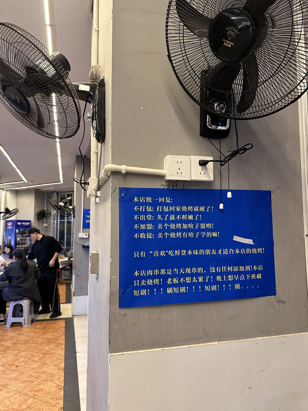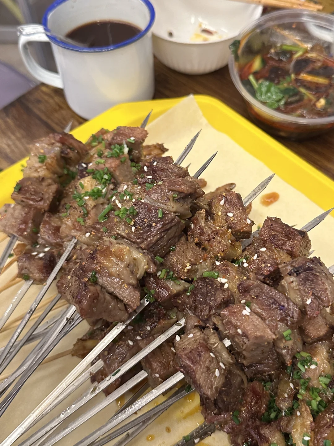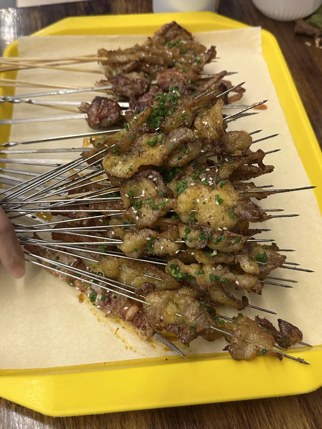 最好吃的烧烤(我说的!!! 是个夫妻小店 只做烧烤、后宫夹肉和牛油真的牛大一串 虽然有服务员,但是老板,老板娘还是亲自接待客人、跟客人也是打打闹闹,特别有人情味儿 他家地方不大,但是干干净净