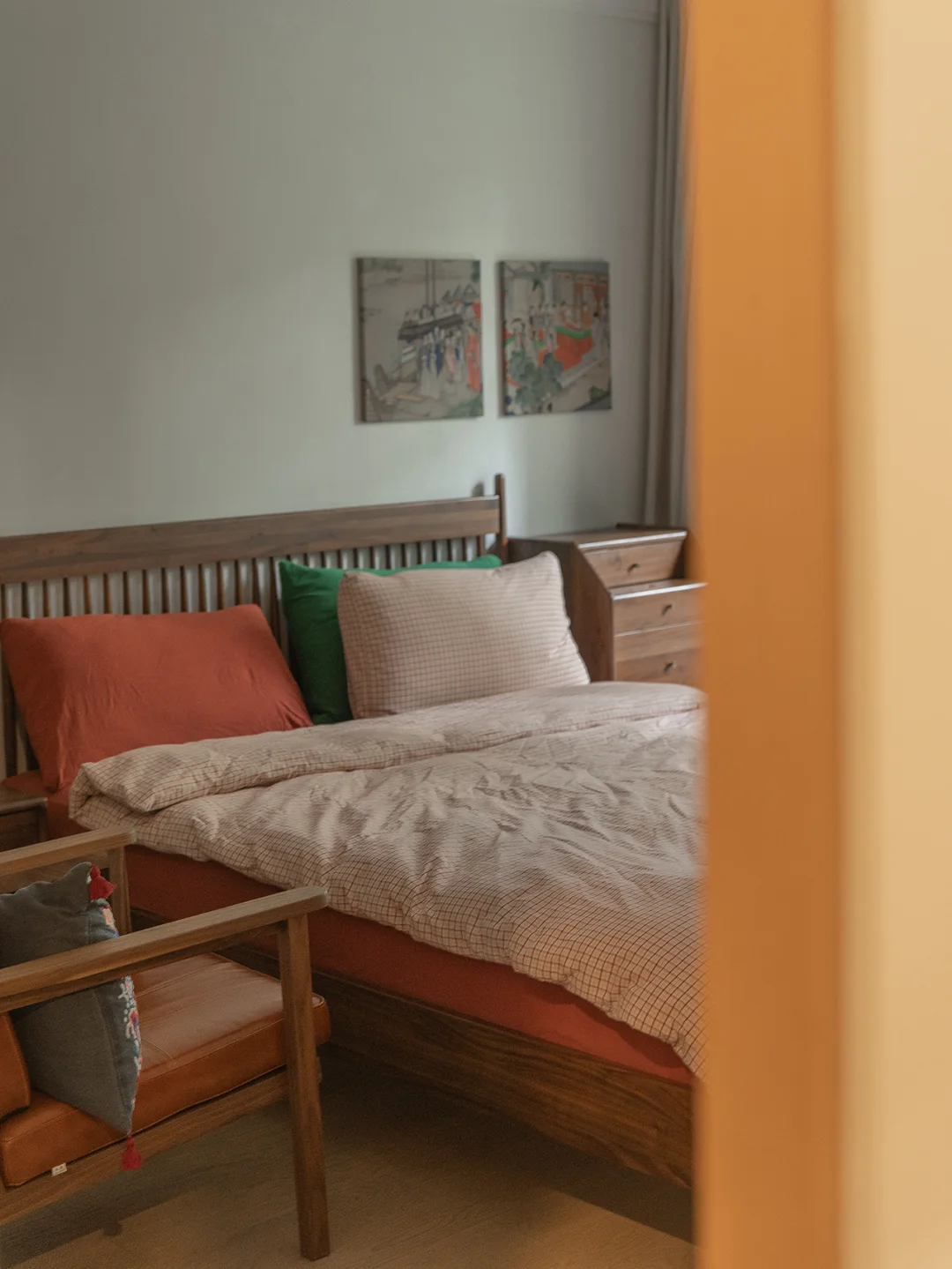 住了七年的家,女儿总爱说:“咱家是旧旧的好看。” 木头家具早已褪去簇新的光泽,留下了我们生活的印记——茶杯的烫痕,猫的抓痕,她小时候画的笔迹。这些痕迹,让家变得独一无二。 我们没有追逐潮流,只是让家一点点长成我们需要的样子。这里挪动一下,那里添置一些,所有的改变都跟着生活的节奏慢慢发生。 如今推开门,是一种被熟悉包裹的安心。这里不只是一个房子,它是盛满了我们七年光阴的,温暖的家。