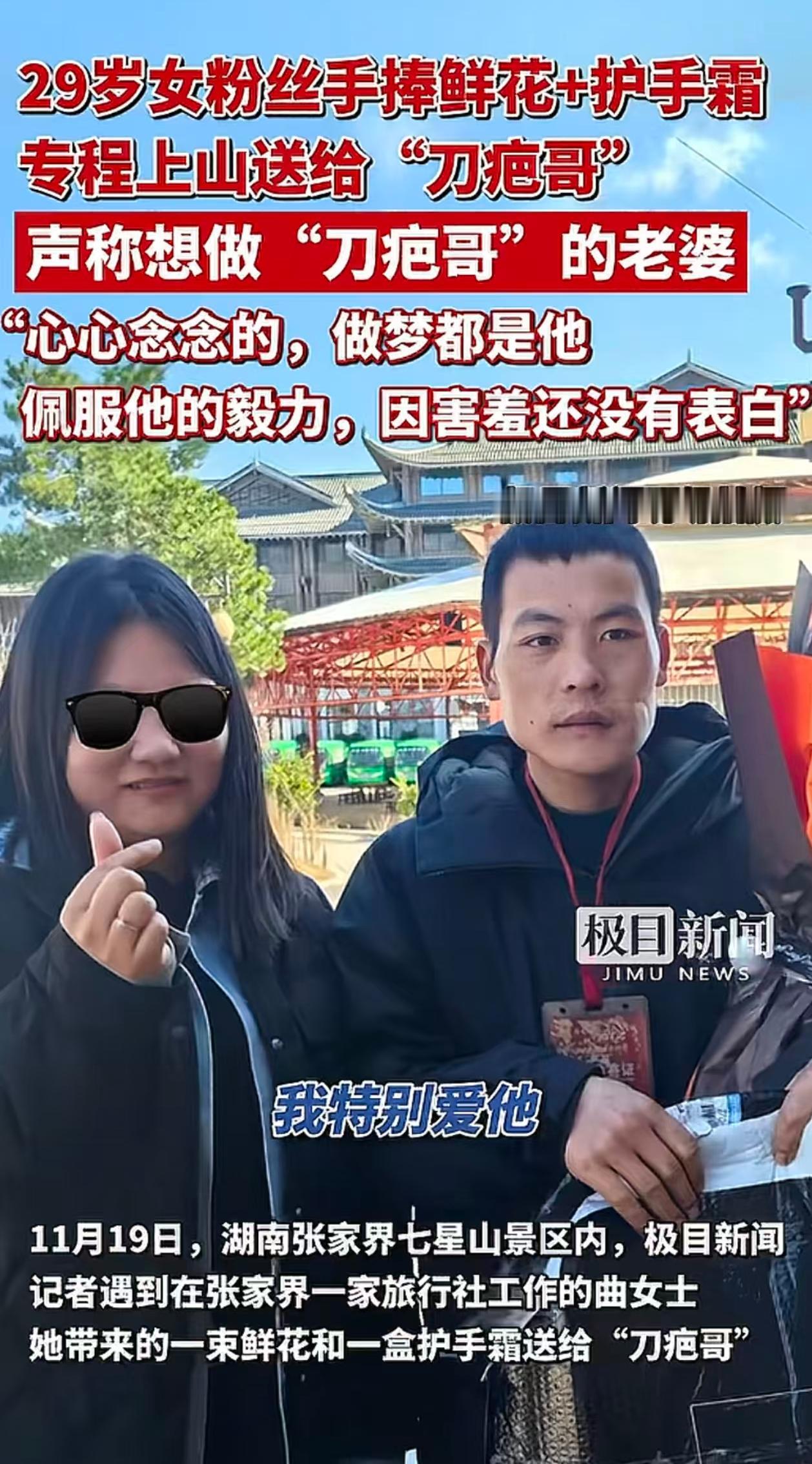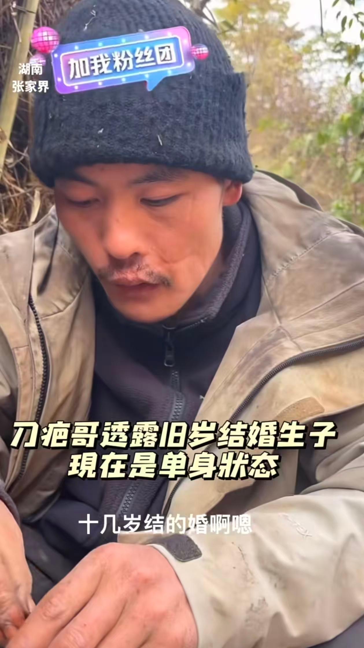 刀疤哥出名了,也有女粉丝对着镜头给他示爱! 刀疤哥手机300元,网卡地以为自己手机欠费,还充了600元,所以这就是刀疤哥说他不喜欢玩手机的原因吧! 下山的时候就刀疤哥没有行李箱,一个塑料袋装行李,想起比赛的时候他说过,等比赛结束,就去工地吃12元的快餐补身体,相信这是他以前生活的常态,但是网友觉得好心酸! 刀疤哥才29岁,孩子都11岁了,离异,主播问是不是因为出了车祸,到导致妻子离开他的,他也是闭口不谈,没说前妻的不好,只解释说这些对孩子有影响! 可见刀疤哥是有骨气的,不卖惨,进决赛时也说不开直播,不好意思让粉丝给他送礼物。 现在刀疤哥进入决赛,也有获得女粉丝的青睐,这位女粉丝对着镜头给刀疤哥表白,她很喜欢刀疤哥,憨厚老实。 有网友说,这个女孩子合适,微胖型,是刀疤哥理想类型!