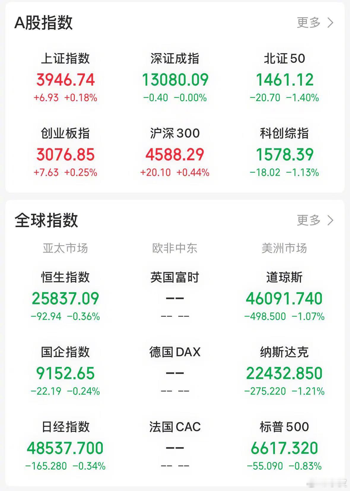 【今日看盘】指数红了,个股惨了。今天三大指数有涨有跌,上证指数上涨 0.10%,深成指平盘报收,创业板指上涨 0.25%。表面看指数表现尚可,但个股呈现大面积杀跌态势。盘中绝大多数时间,下跌个股数量维持在 4000 家左右,收盘时仍有 3984 家个股下跌,仅 1176 家上涨。今天全部A股中位数下跌约 1.50%,盘面上黄线始终处于白线下方,一定程度上掩盖了绝大多数个股的惨淡表现。今天另一个值得关注的点是成交量,市场成交额萎缩至 1.72 万亿元。这一数值是本月以来的最低水平,也是近 3 个月以来的第三低。主力资金在昨日大幅流出近 1000 亿元后,今天继续流出 513 亿元,这一趋势从盘面中可清晰察觉。今天拉动上证指数的主要力量是“三桶油”、四大行及五大保险,这类权重股集体发力,支撑指数保持相对强势。仅中石油、中海油、中石化三家就贡献了 8.04 个点的涨幅,而上证指数全天上涨不足 7 个点。石油板块走强与传闻中加大石油储备的消息相关,此处暂不展开分析。此外,锂矿板块表现相对强势,主要受碳酸锂期货价格上涨的带动。不过需注意,锂矿板块的主要公司仍处于扭亏为盈的阶段,且锂矿价格上涨对电池板块形成了一定压制,今天整个电池板块下跌约 1.4%。好在电池板块龙头宁德时代逆势上涨,对深成指起到较强支撑作用,其今天上涨约 1.50%,报收 391.1 元/股。此前宁德时代询价减持价格为 376 元/股,这意味着所有竞得减持份额的基金公司,今天账面均实现盈利。同时,以中际旭创为代表的“易中天”盘中表现强势,为上证指数最终拉回提供了重要助力。今天涨停个股约 63 家,跌停个股 24 家。跌停个股多为前期借“玄学”炒作的妖股,这类妖股是游资活跃的主要领域。区域概念方面,前期热门的海南板块今天跌幅最大,达 4% 左右。结合跌停个股特征及区域炒作板块的下跌幅度来看,市场中最活跃的炒作资金今天同样处于流出状态。当前最值得关注的是成交量问题。临近年底,机构面临结账需求,尤其是基金存在排名压力,落袋为安成为不少机构的年底操作惯例,这在一定程度上对市场流动性造成困扰。后续成交量是否会继续萎缩值得高度关注,若持续萎缩,则表明主力资金“无心恋战”。(本文数据来自:choice数据)一句话点评:意兴阑珊。