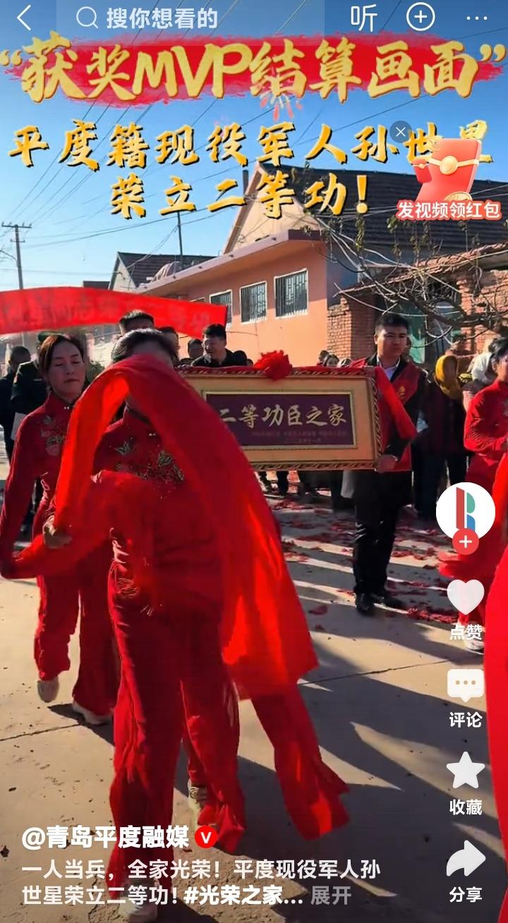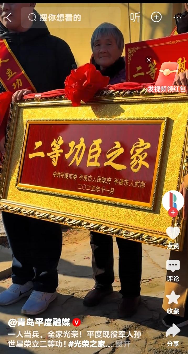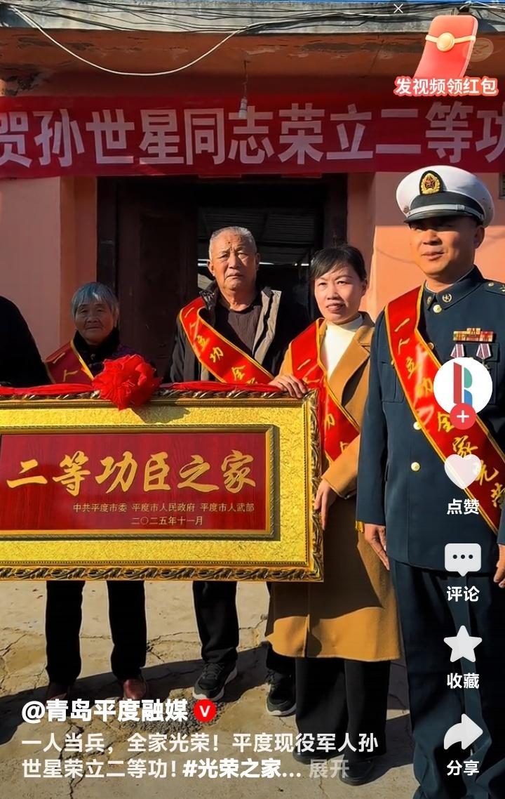 青岛平度沸腾了!90后现役军人孙世星荣立二等功 功臣之家牌匾闪耀整条街 背后故事看哭全网 (来源:青岛平度融媒) 初冬的平度街头,锣鼓声震天响。一支队伍抬着“二等功臣之家”的牌匾,缓缓走向孙家小院。红色绸缎在阳光下格外刺眼,邻居们踮着脚举着手机,有人悄悄抹眼泪。这份荣耀,属于平度籍现役军人孙世星——一个在部队淬炼成钢的年轻人。 没人能想象,这个沉默寡言的青年曾在演习中三天三夜不眠不休。沙漠的风沙刮过脸颊,他趴在装甲车底检修线路,指甲缝里嵌满油污。那次跨区域实战演练,他带领班组突破十七项技术瓶颈,让老式装备打出精准命中率。捷报传回指挥部,全场起立鼓掌。 荣立功勋的背后,是十年未归家的除夕夜。母亲总把团圆饭的照片发到家族群,配文“儿子保卫国家,我们守护小家”。父亲珍藏着一沓车票,那是每年探亲被临时任务打断的证明。女儿刚学会走路时,只能隔着屏幕喊“爸爸”,如今她骄傲地指着电视里的军人说:“这是我爸爸!” 当市委领导将立功喜报递到孙父手中时,这位老党员的手一直在抖。他想起儿子入伍前夜,父子俩就着一盘花生米长谈。“去了就别惦记家里”,这句话成了十年间的默契。小院里那棵白杨树,从树苗长到三层楼高,如同孙世星从新兵蜕变成尖兵。 军营里流传着孙世星的传奇。为攻克某型装备盲区,他翻烂了三本外文手册,笔记摞起来半人高。深夜的器材室永远亮着灯,战友调侃他“嫁给坦克了”。那次高原极寒测试,他裹着军大衣睡在装备旁,清晨睫毛结满冰霜,却咧嘴笑说:“数据采集成功了!” 平度这片热土,历来不乏英雄血脉。革命战争时期出过爆破英雄,新时代又涌现维和勇士。孙家客厅的相框里,并列挂着祖父的抗战纪念章和孙世星的立功绶带。血脉里的忠诚,在不同时空交相辉映,诠释着“光荣之家”的千钧重量。 网络热潮随着牌匾送达达到顶峰。短视频里,军地领导共同悬挂牌匾的画面获赞百万,有网友留言:“这才是该上热搜的顶流!”年轻父母带着孩子专程来合影,小学生作文里写道:“长大后我要当孙叔叔这样的兵。”这种自发传播,比任何宣传都更具穿透力。 或许我们从未察觉,和平年代的每一缕晨曦,都藏着无数孙世星的坚守。他们用青春做界碑,把思念压进枪膛。当你在咖啡馆享受闲暇时,他们在边防线巡逻;当你在影院观看大片时,他们在演兵场冲锋。这就是中国军人的浪漫——把最深沉的爱,献给脚下土地。 那个下午,孙父抚摸着牌匾上的鎏金大字,对镜头只说了一句:“值得。”两个字重若千钧,道尽所有军属的心声。此刻平度的天空,晚霞如勋章般灿烂。 青岛身边事 青岛爆料
