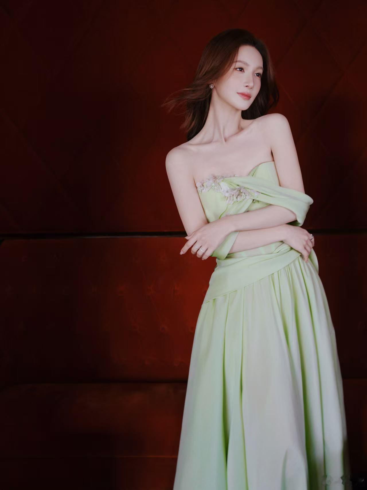 金晨穿浅绿色纱裙好清新肌肤白皙魅力四射,太美了~~~