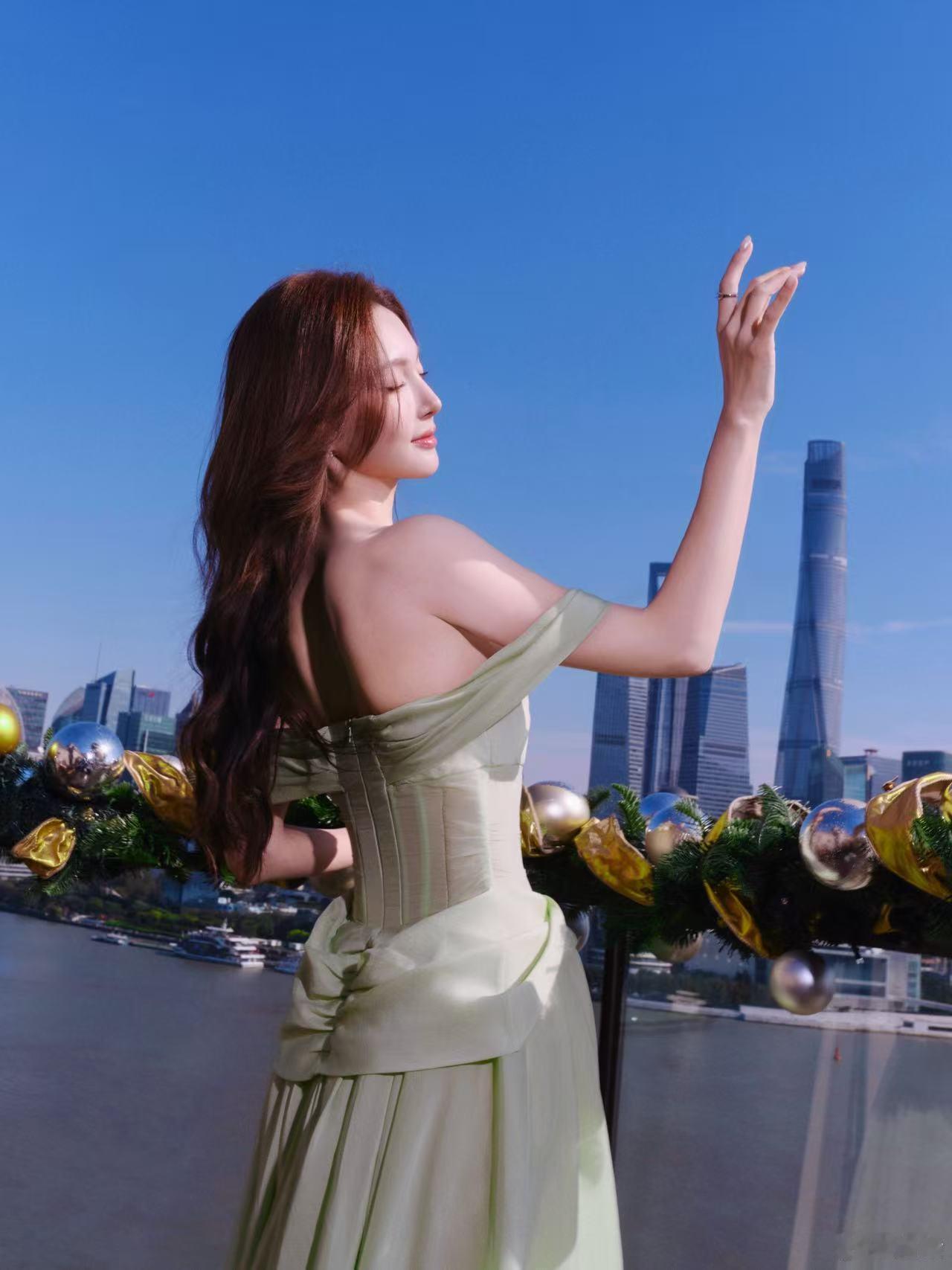 金晨穿浅绿色纱裙好清新 肌肤白皙魅力四射,太美了~~~