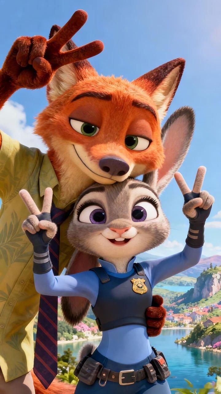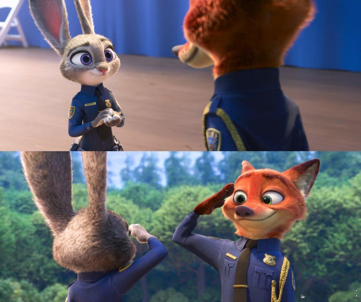 朱迪温柔拍肩的瞬间太戳人,尼克主动抬臂的配合满分,转圈圈+整理领结,每帧都甜到齁,同事?我以十袋胡萝卜为证!